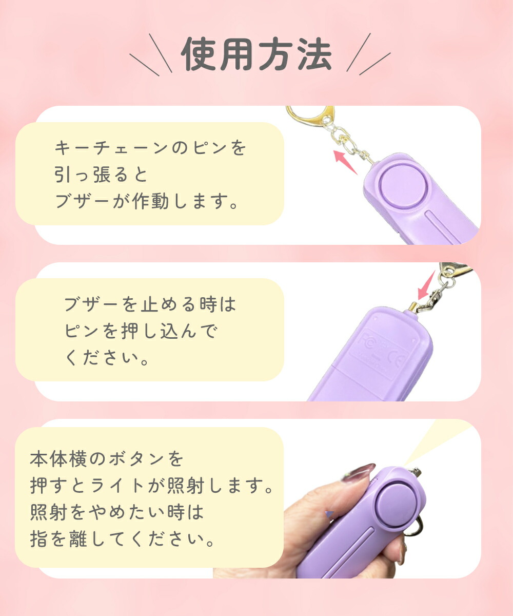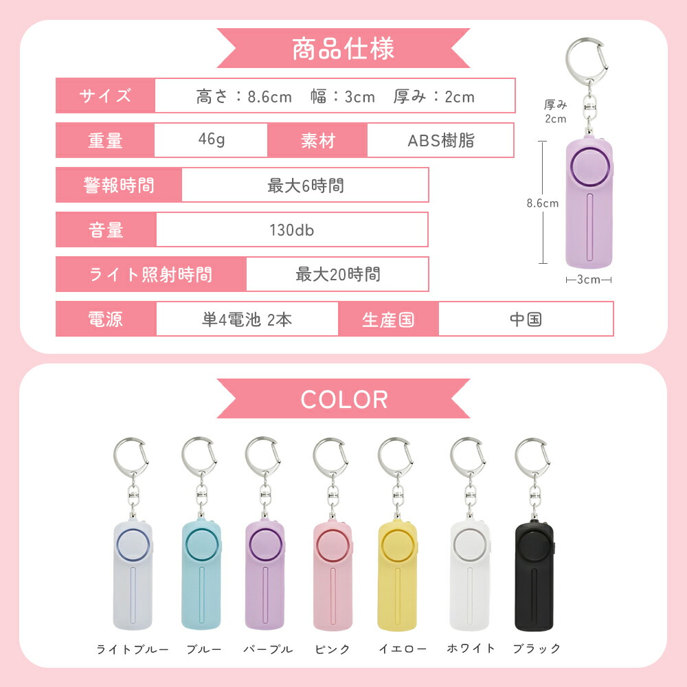 長時間連続使用 防犯ブザー 子ども ラ キッズ セーフティグッズ 防犯ブザー アラーム 人気 ブラック ホワイト ライトブルー ブルー ピンク パープル イエロー