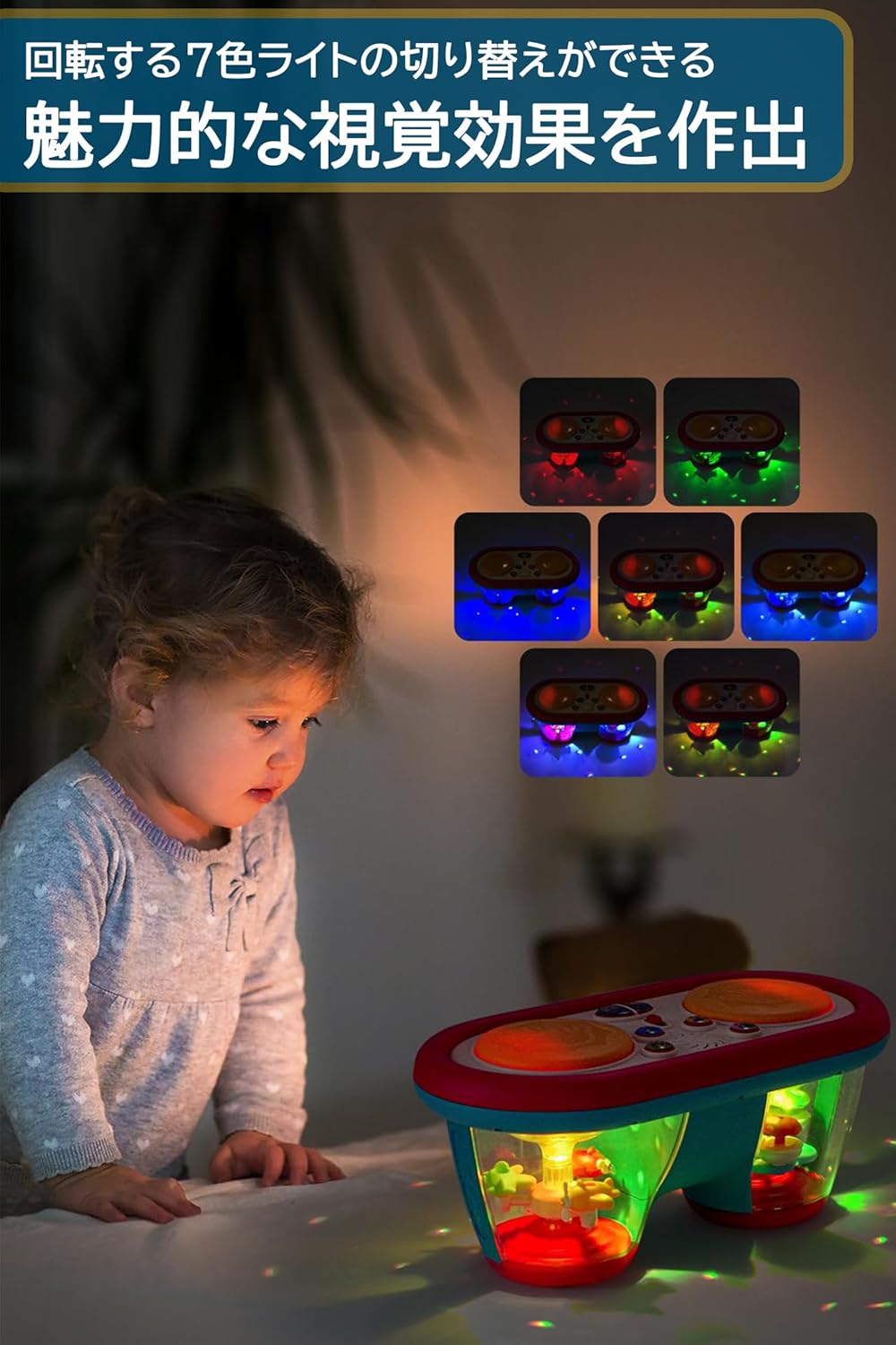 7色のライトの切り替えができます、子供の目を引き付ける回転照明機能もあります。魅力的な視覚効果を作り出し、子供の興味を引き付け、玩具への興味を高めます。
