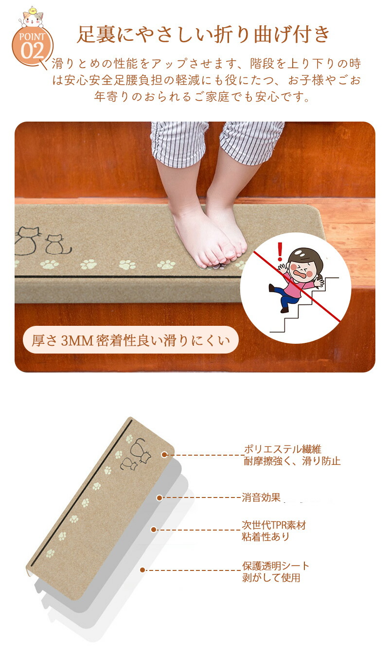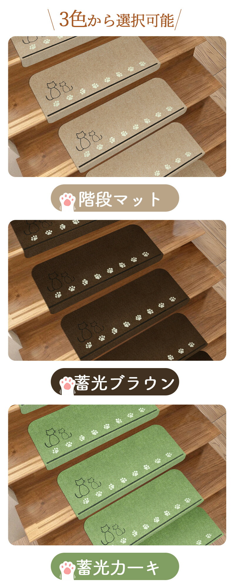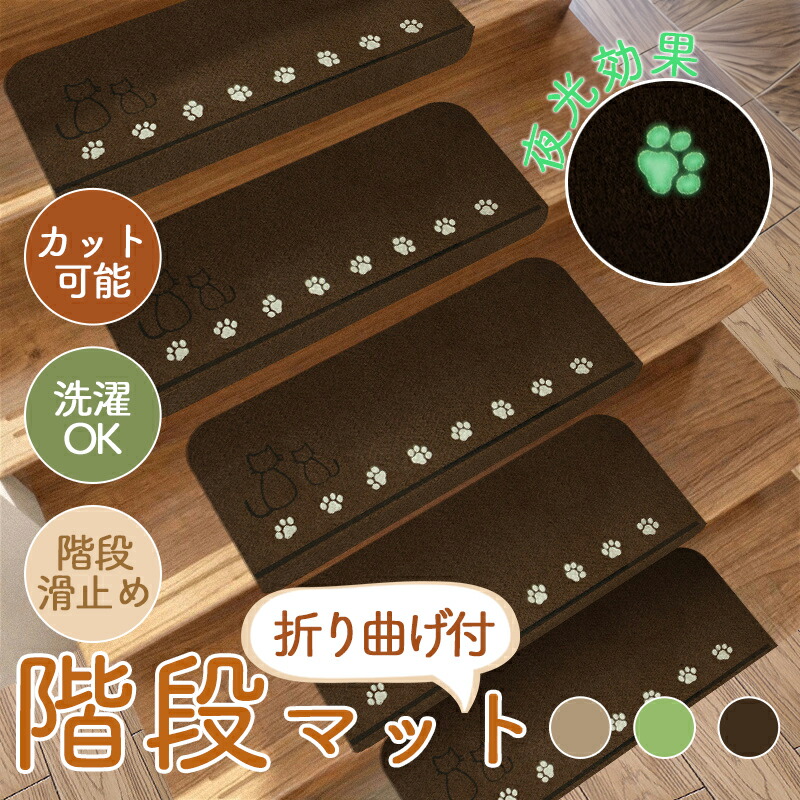 洗濯可能 階段マット 折り曲げ付き 吸 蓄光ベージュ 蓄光ブラウン 蓄光カーキ 5枚 7枚 15枚 18枚 20枚