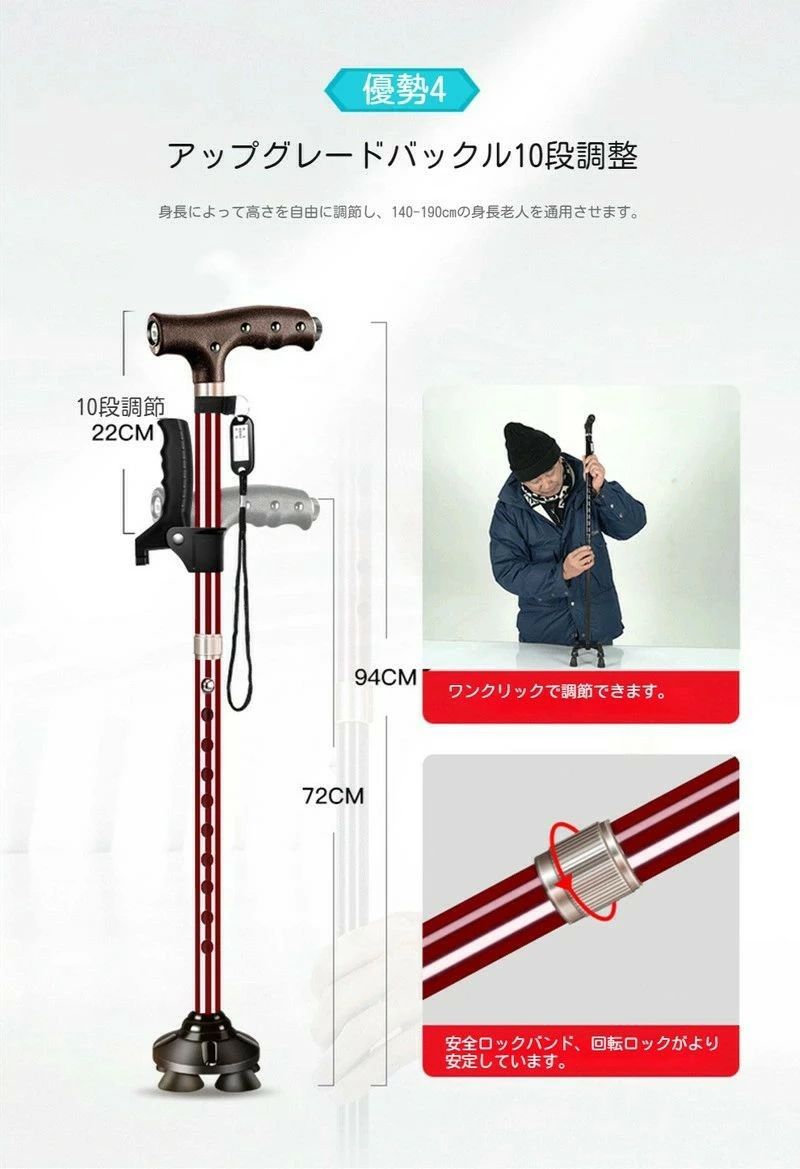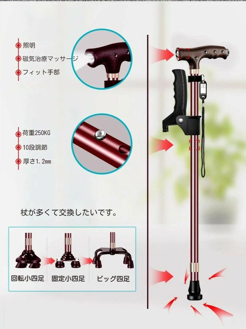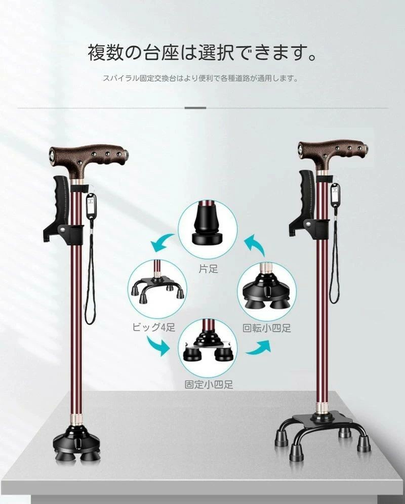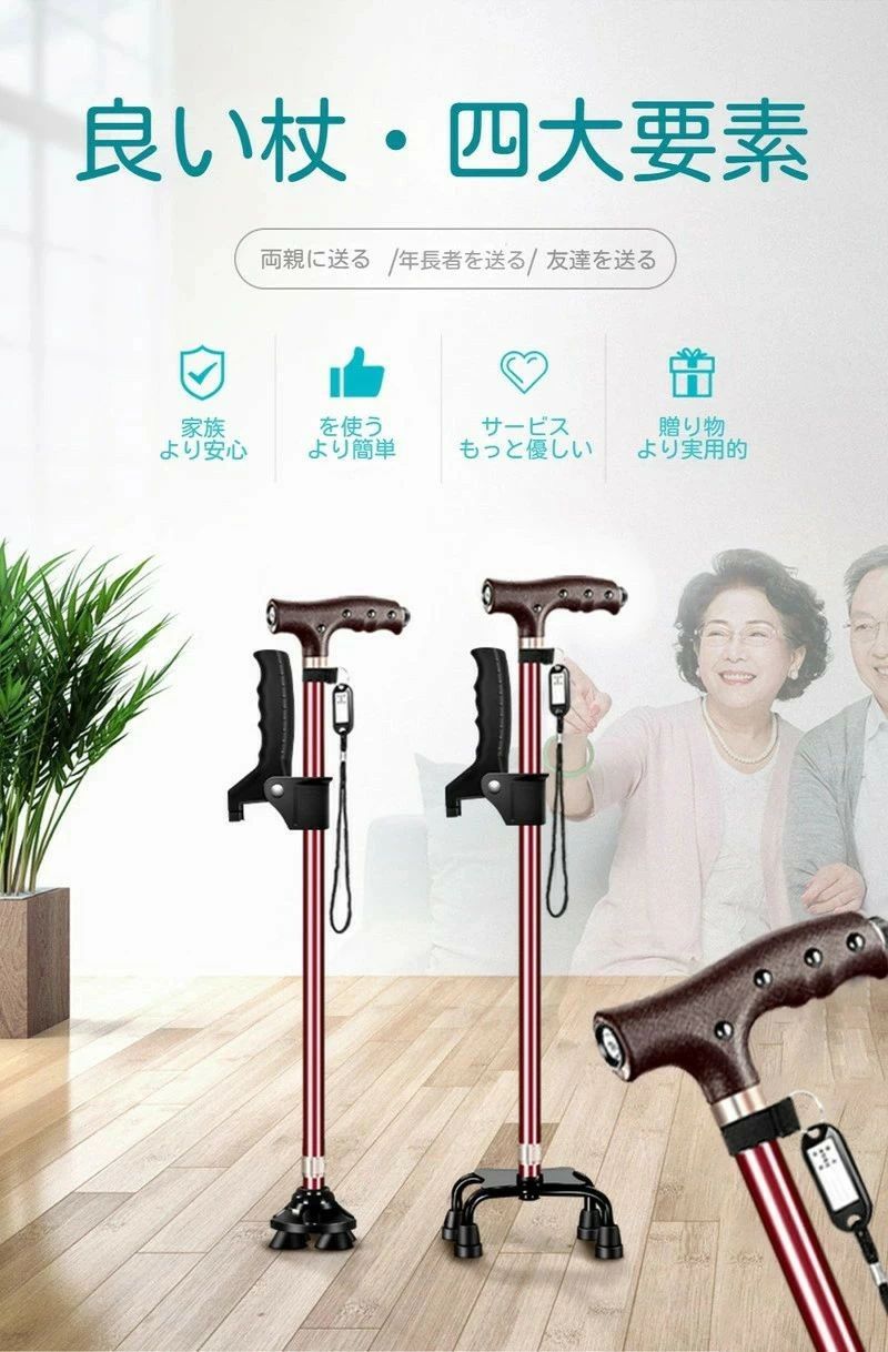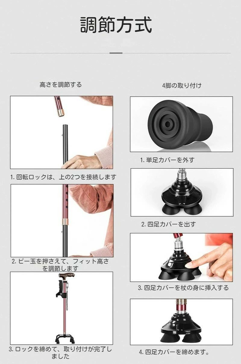 つえ 杖 軽量 自立式 4点杖 介護 プラック ワインレッド A セット B セット C セット