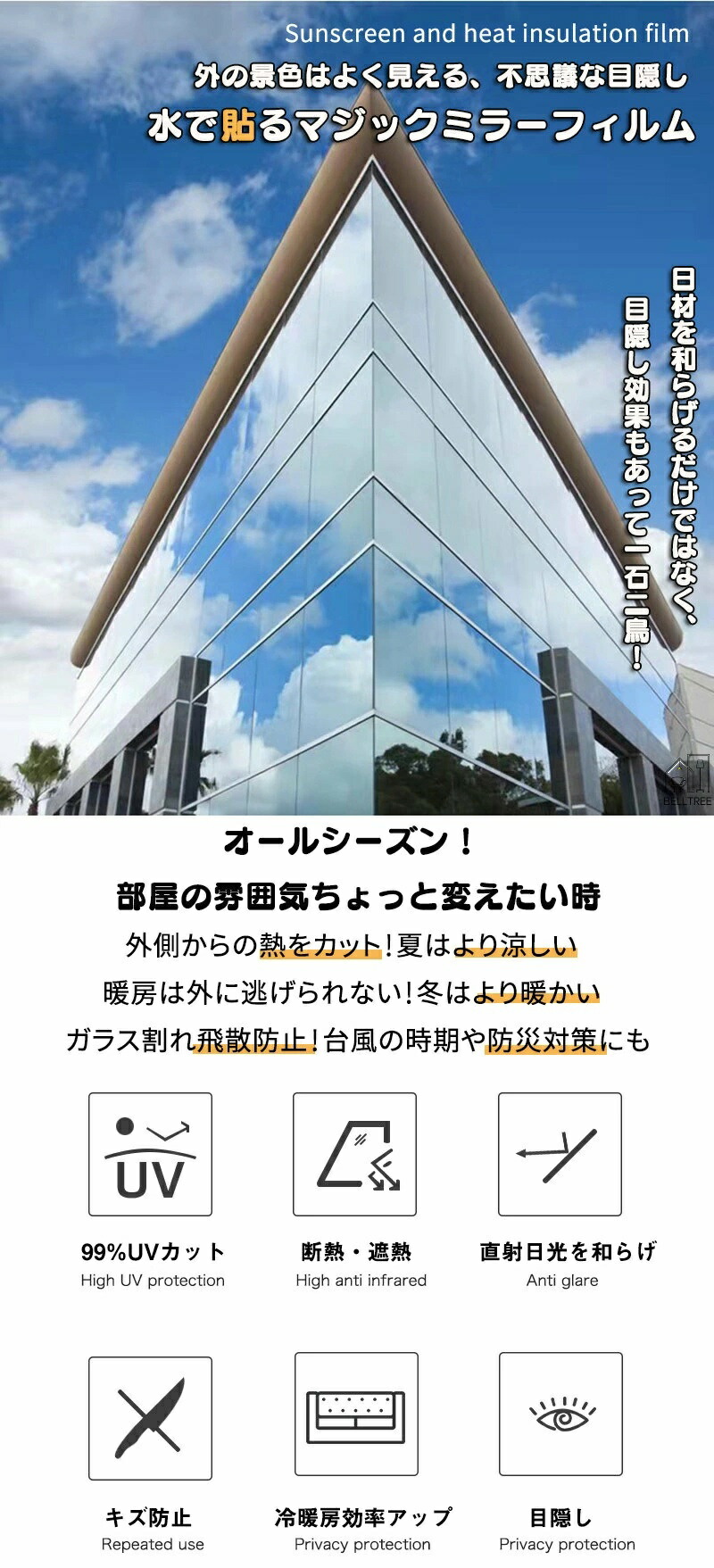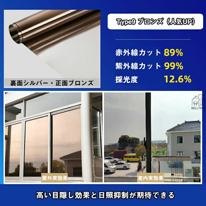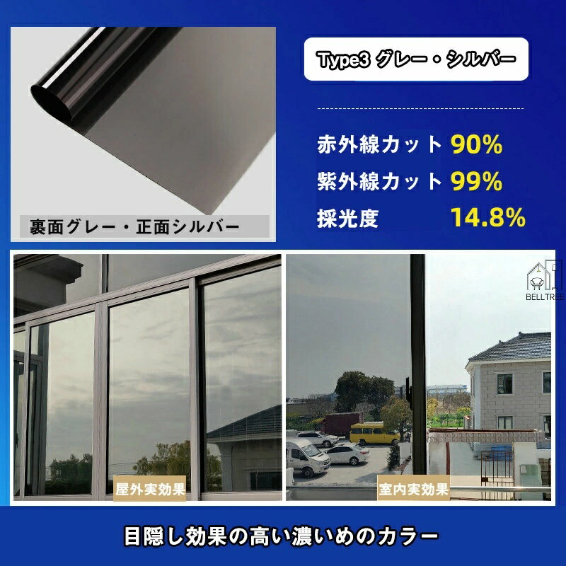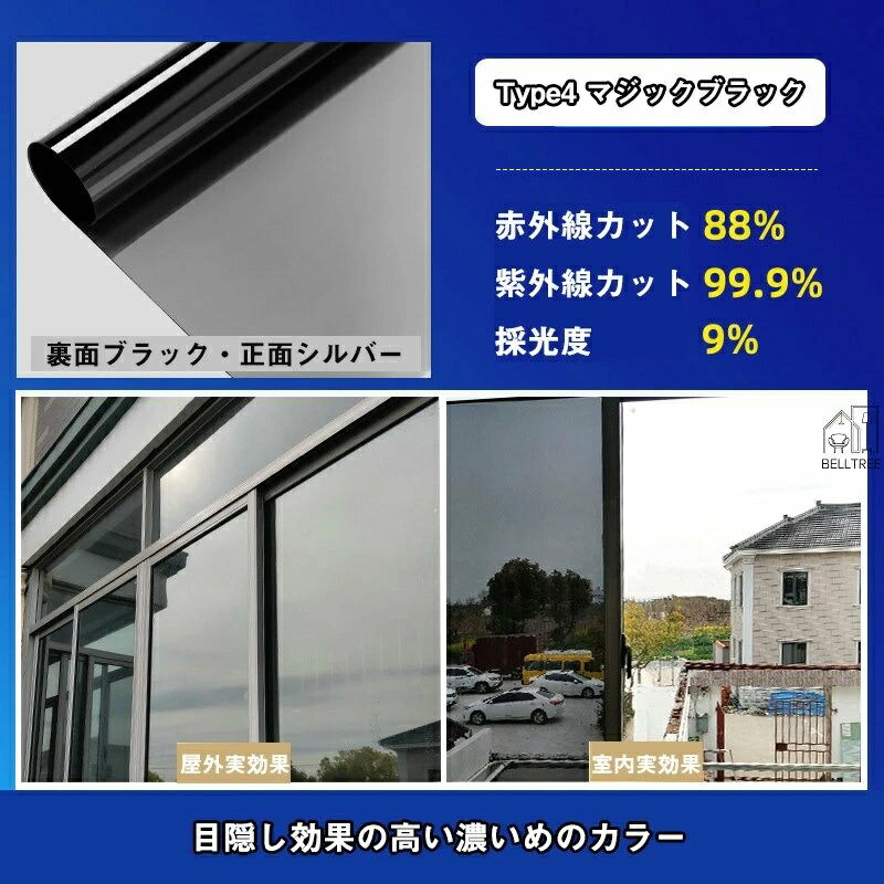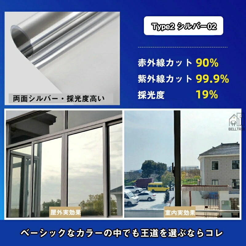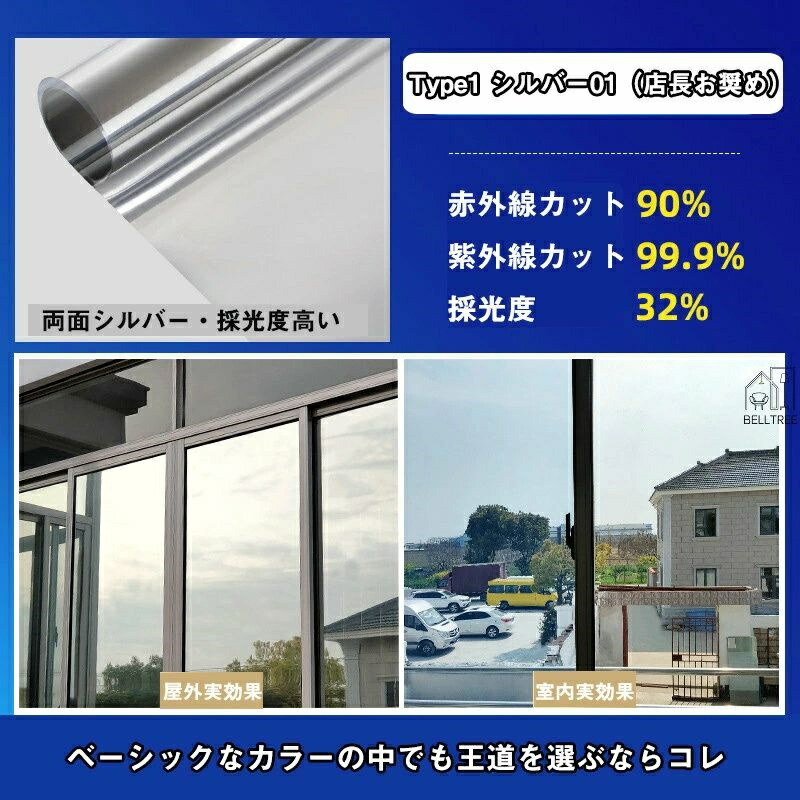窓ガラスフィルム 台風対策 断熱シート Type1 シルバー01 採光度32% Type2 シルバー02 採光度19% Type3 グレー・シルバー Type4 マジックブラック Type5 ブラック Type6 ダークブルー・シルバー Type7 ブルー・シルバー Type8 グリーン・シルバー Type9 ブロンズ・シルバー Type10 ゴールド・シルバー 30*200cm 40*200cm 50*200cm 60*200cm 70*200cm 80*200cm 90*200cm 100*200cm 110*200cm 120*200cm