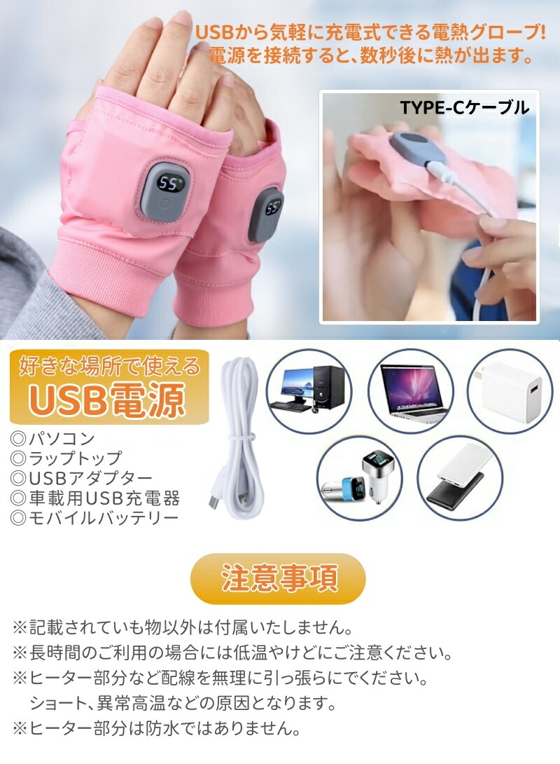 電熱グローブ ヒートグローブ ヒーター ブラック ピンク
