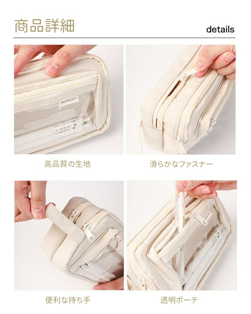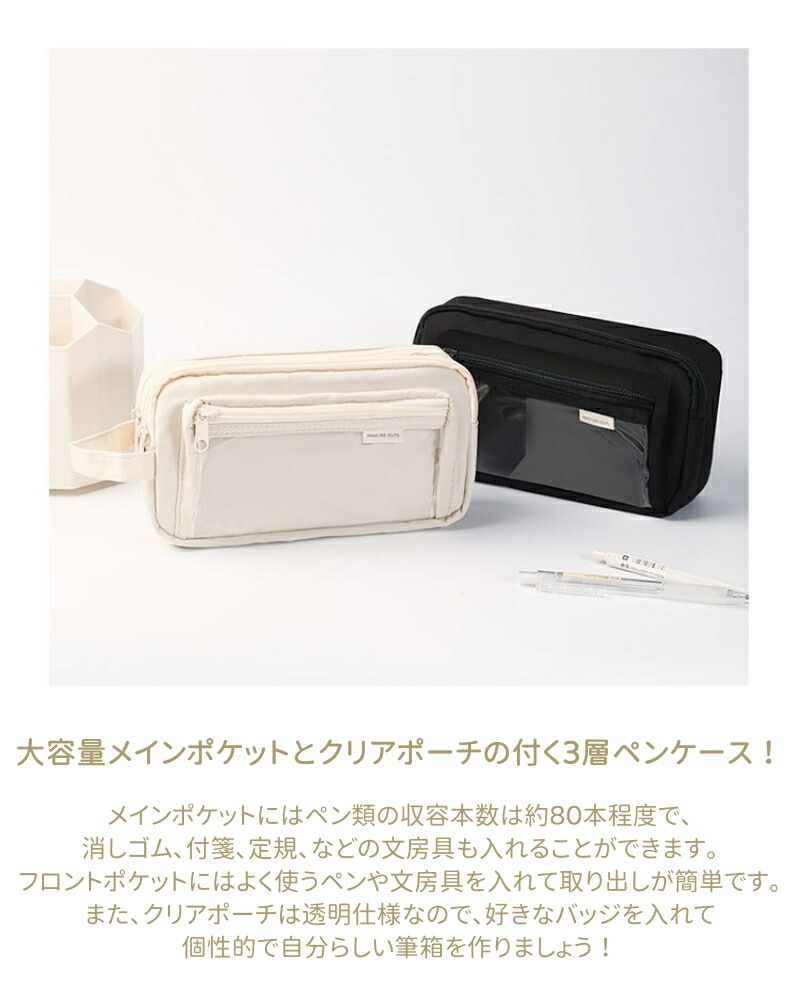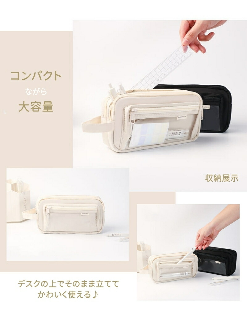 筆箱 韓国 ペンケース 透明窓 大容量 日用品雑貨 文房具 手芸 通販 ブラック ベージュ パープル グリーン ブルー ピンク