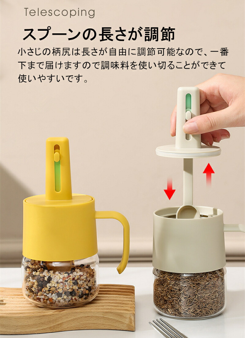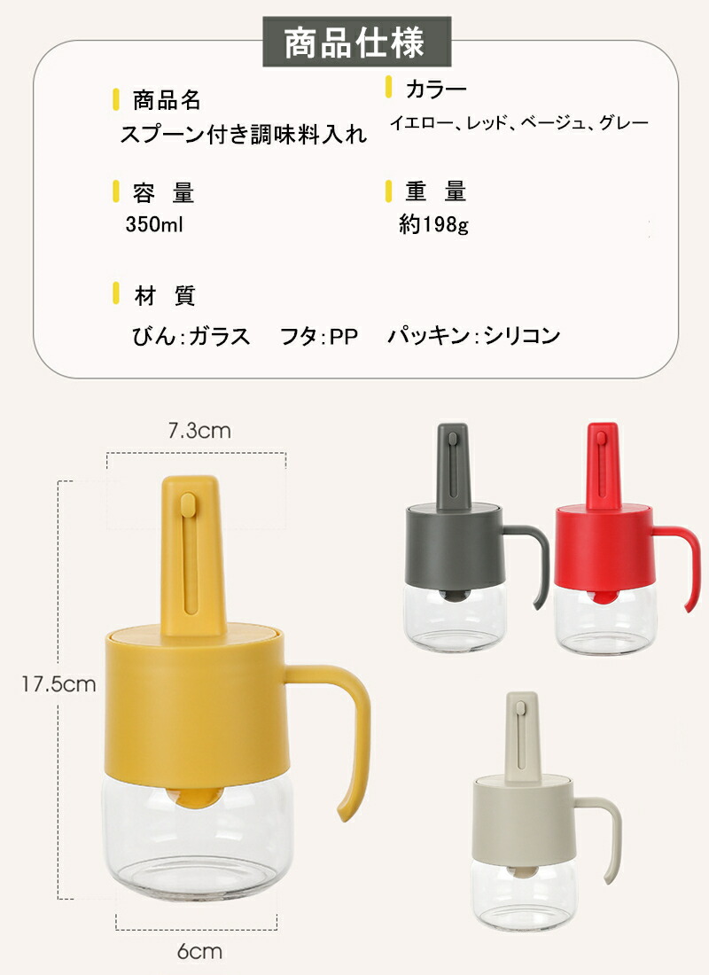 調味料入れ スプーン付き 塩入れ 砂糖 保存容器 調味料入れ 調味料入れセット 豊富 ベージュ グレー レッド イエロー