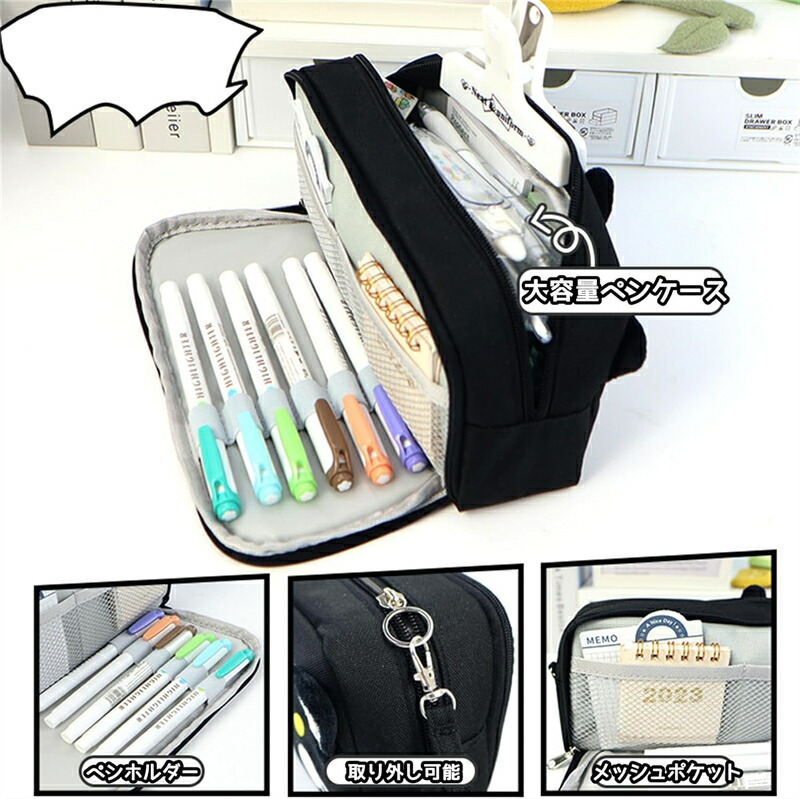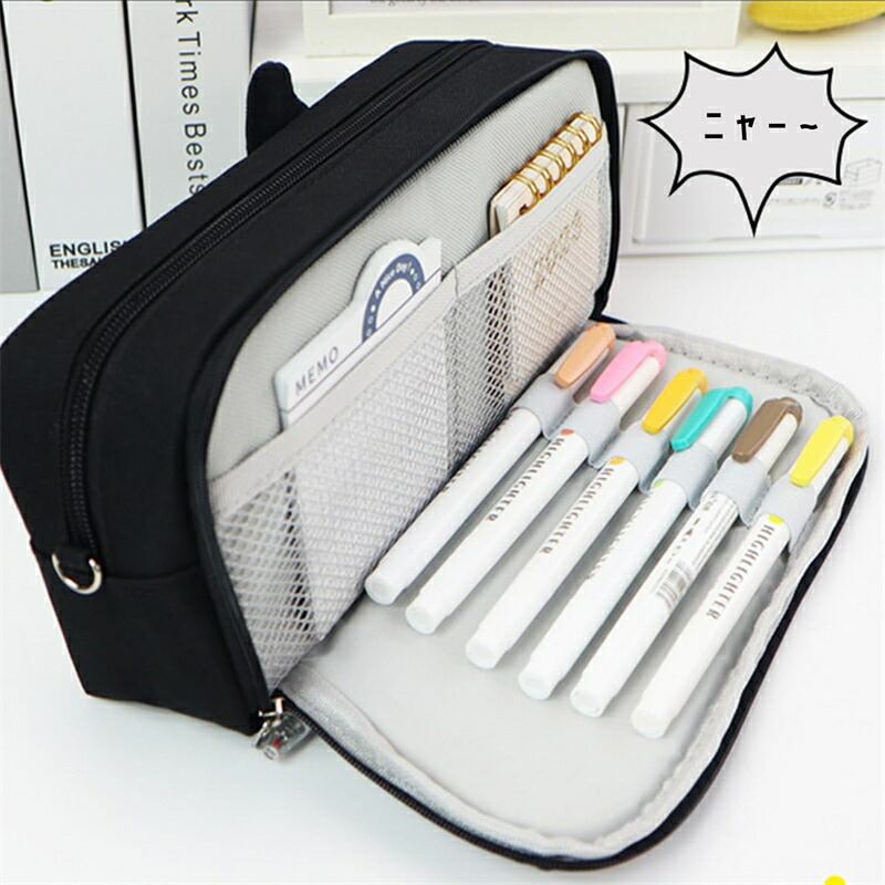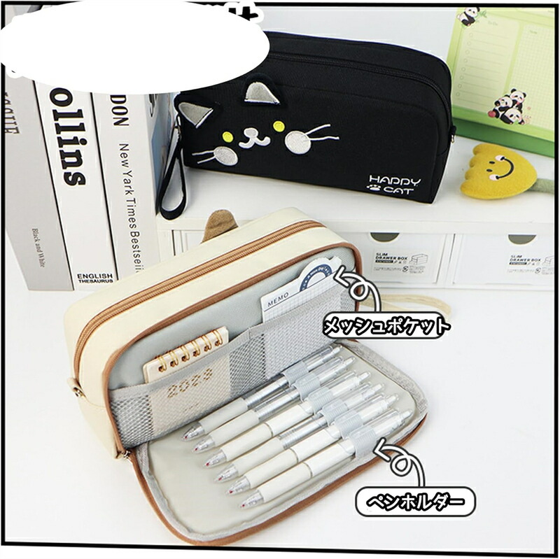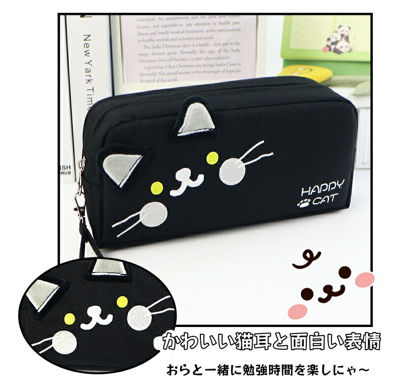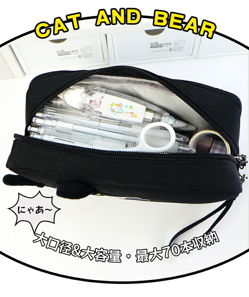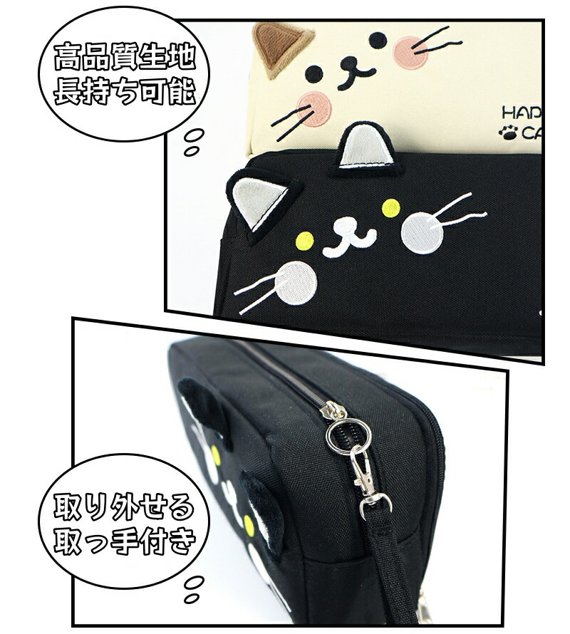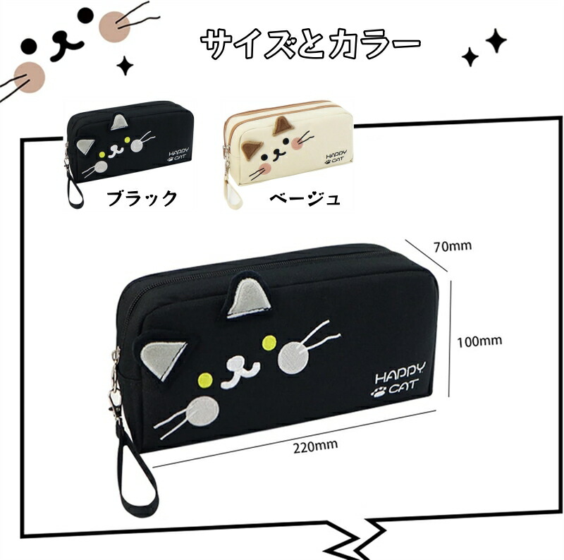ペンケース ペンポーチ 猫 ネコ 大容 日用品雑貨 文房具 手芸 特集 ブラック ベージュ