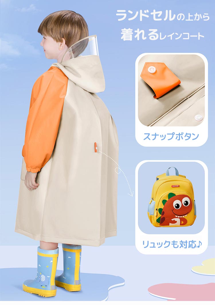 レインコート キッズ ランドセル対応 キッズ ベビー マタニティ 特集 オレンジ×ベージュ ネイビー×オレンジ ネイビー×ブルー ピンク×パープル L XL 2XL 3XL