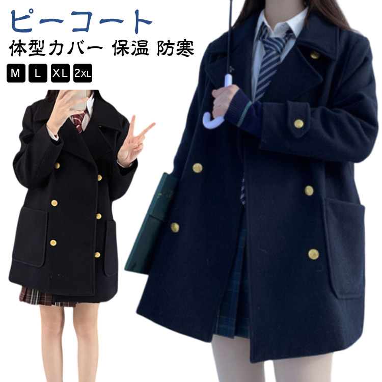 通学 学生服 Pコート ピーコート 高 レディースファッション 新作 ネイビー ブラック M L XL 2XL