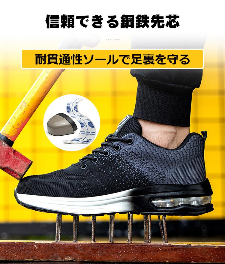 安全靴 鋼鉄先芯 メンズ レディース グレー ブラック(ホワイトソール) ブラック(ブラックソール) ネイビー ピンク 22.5 23.0 23.5 24.0 24.5 25.0 25.5 26.0 26.5 27.0 27.5 28.0