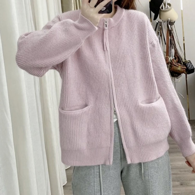 クルーネック レディース 前開き ニッ レディースファッション 新作 グレー イエロー ピンクパープル アイボリー ベージュ ピンク ブルー ブラック ブラウン