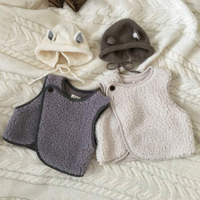 ベスト ボア ベビーベスト キッズベス キッズ ベビー マタニティ 早い者勝ち グレー アイボリー 73cm 80cm 90cm 100cm