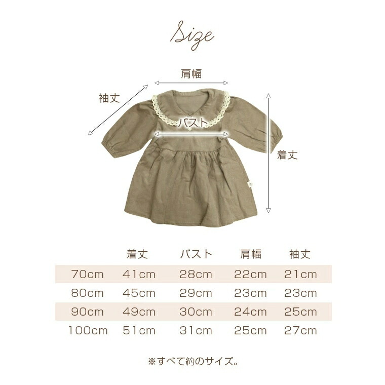 ベビー服 ワンピース 長袖 レース キ キッズ ワンピース 豊富 オフホワイト グレージュ 73cm 80cm 90cm 100cm
