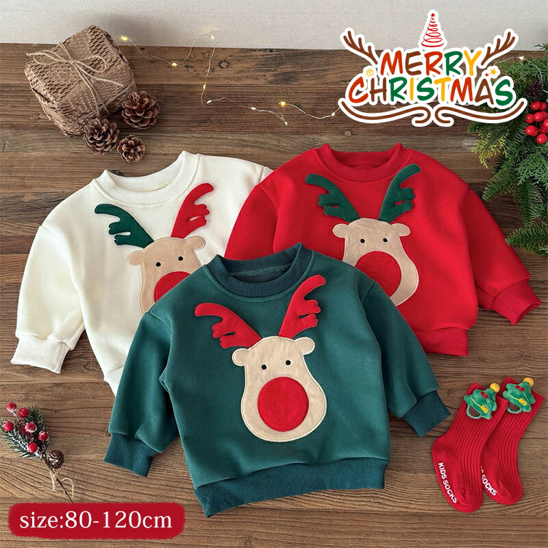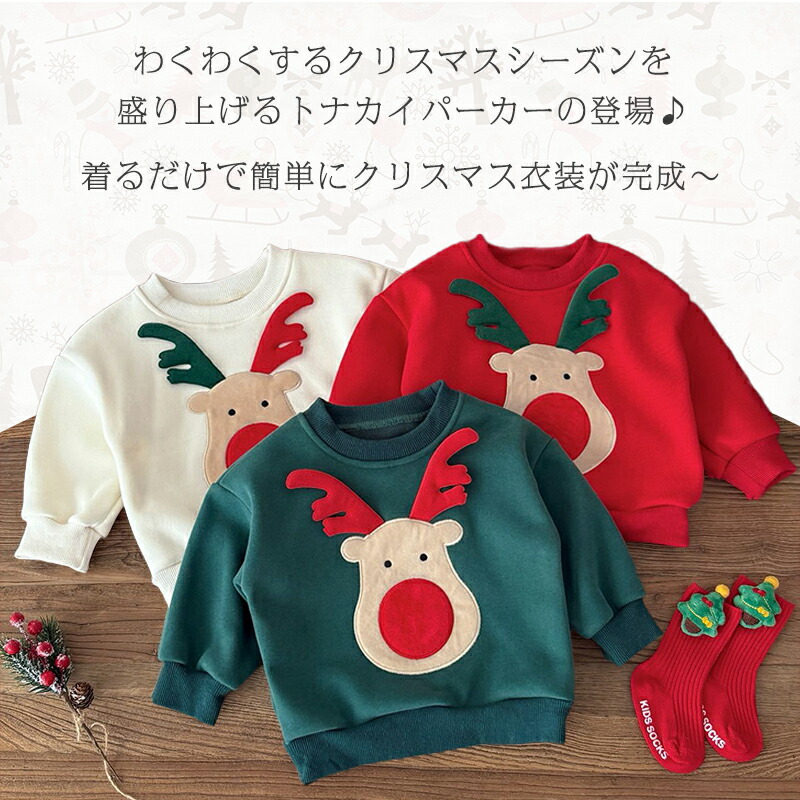 クリスマス 長袖 トレーナー キッズ キッズ ベビー マタニティ 早い者勝ち レッド(トナカイ) グリーン(トナカイ) ベージュ(トナカイ) 80cm 90cm 100cm 110cm 120cm