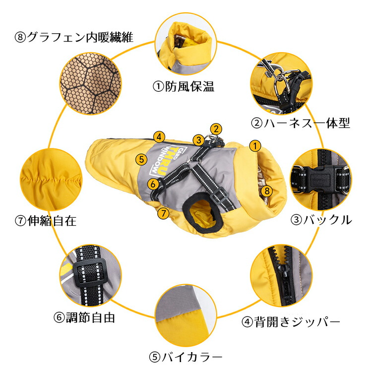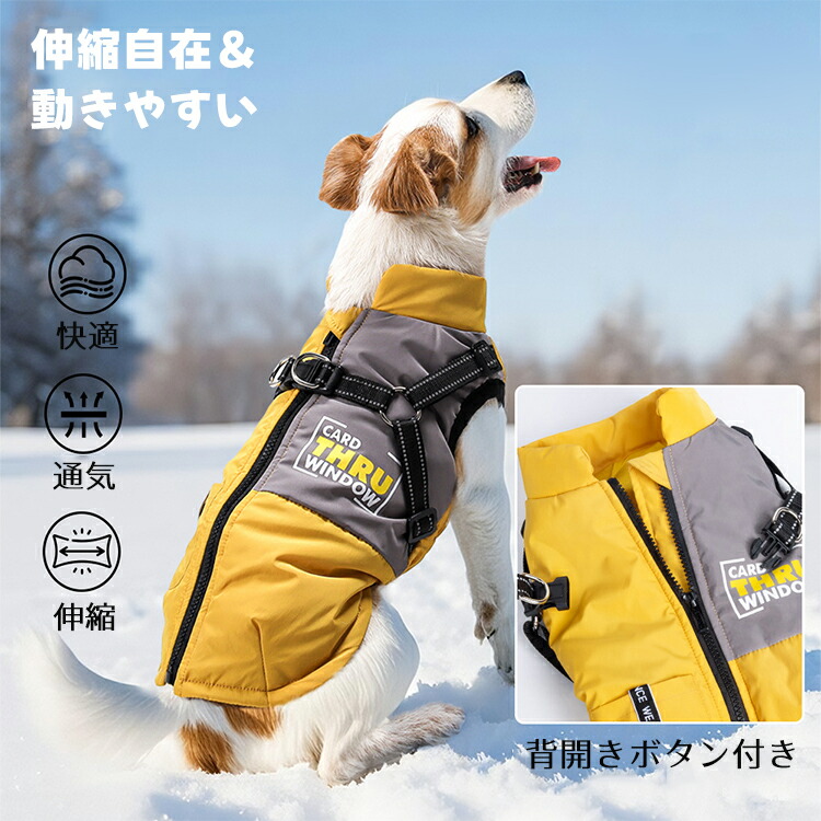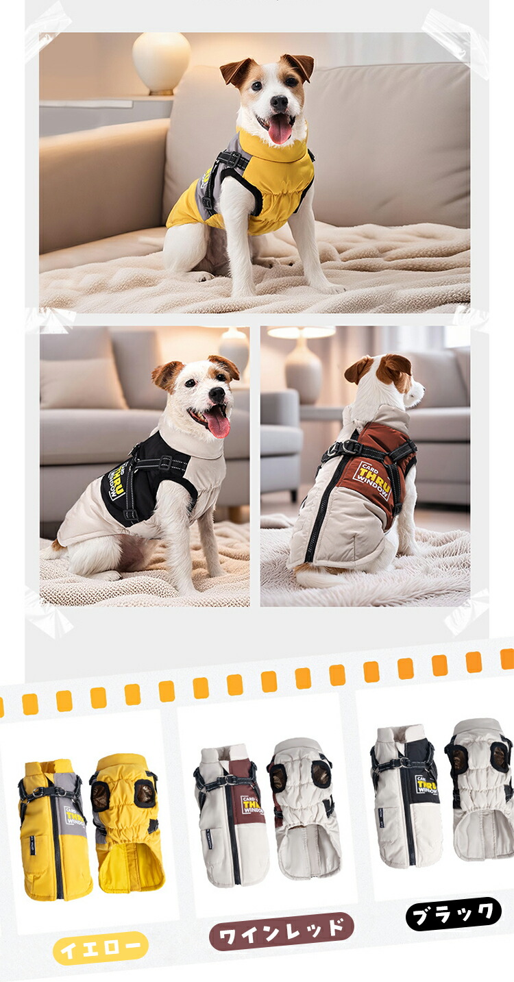 犬用 ハーネス一体型 おしゃれ 寒さ対 ペット ペットグッズ 続々登場 イエロー ブラック ワインレッド S M L XL XXL 3XL