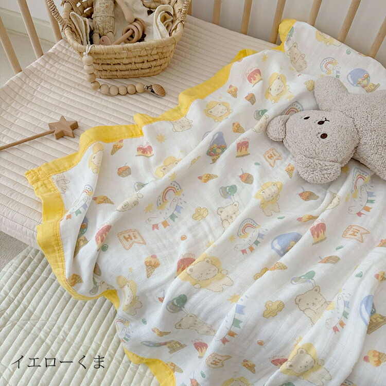 ブランケット 4重ガーゼ 夏用 肌掛け 寝具 掛け布団 豊富 パープルうさぎ ピンクいちご ブルーUFO グリーンくま イエローくま ブラウンくま 110*110cm 120*150cm 150*200cm