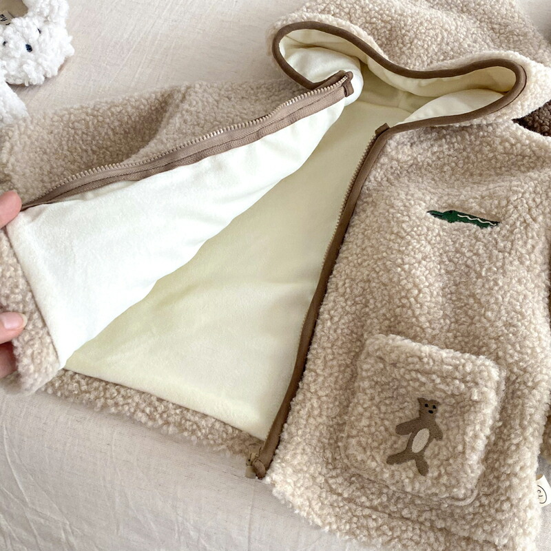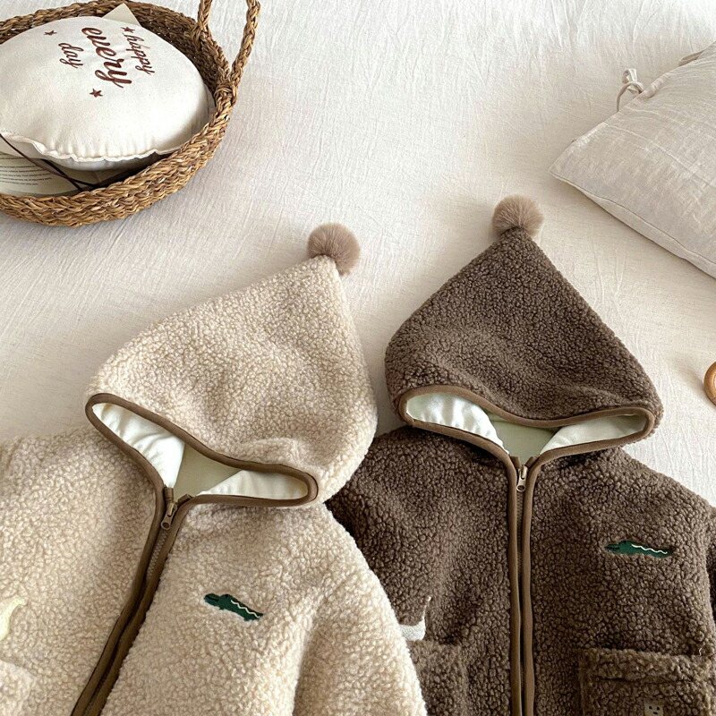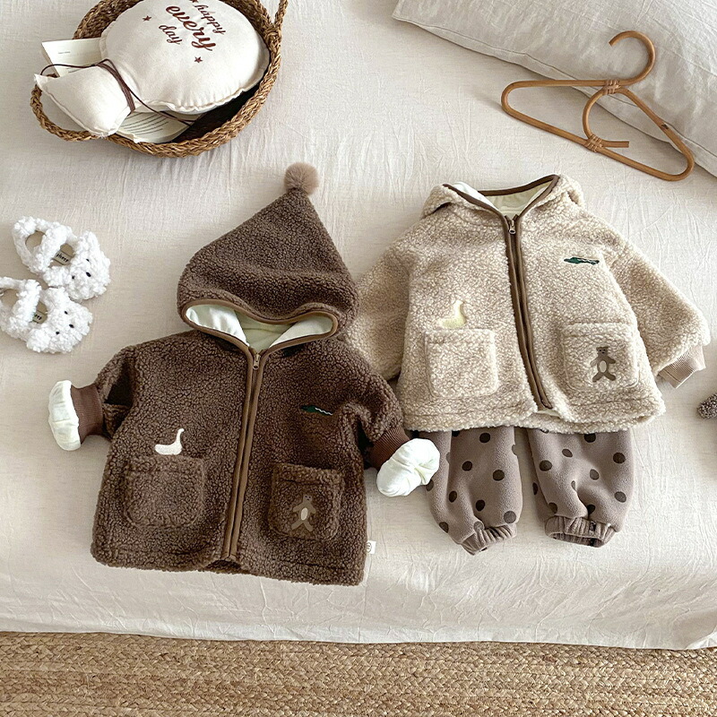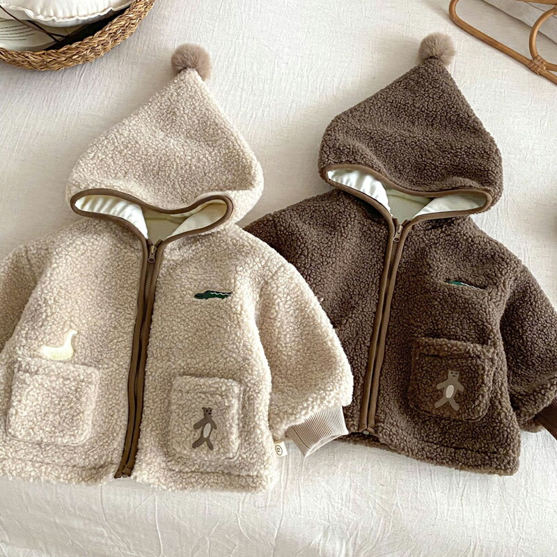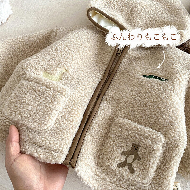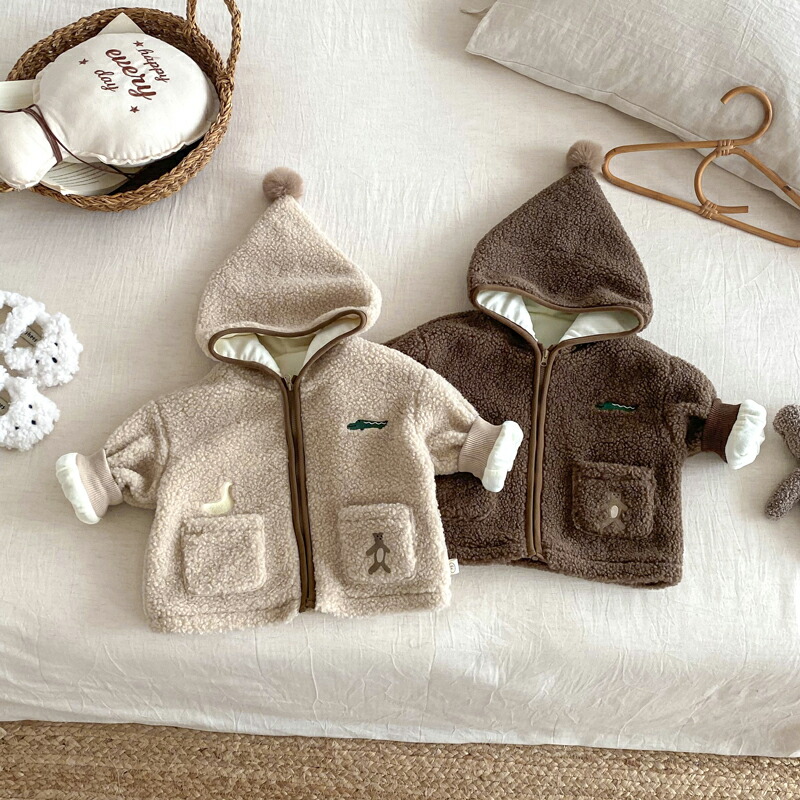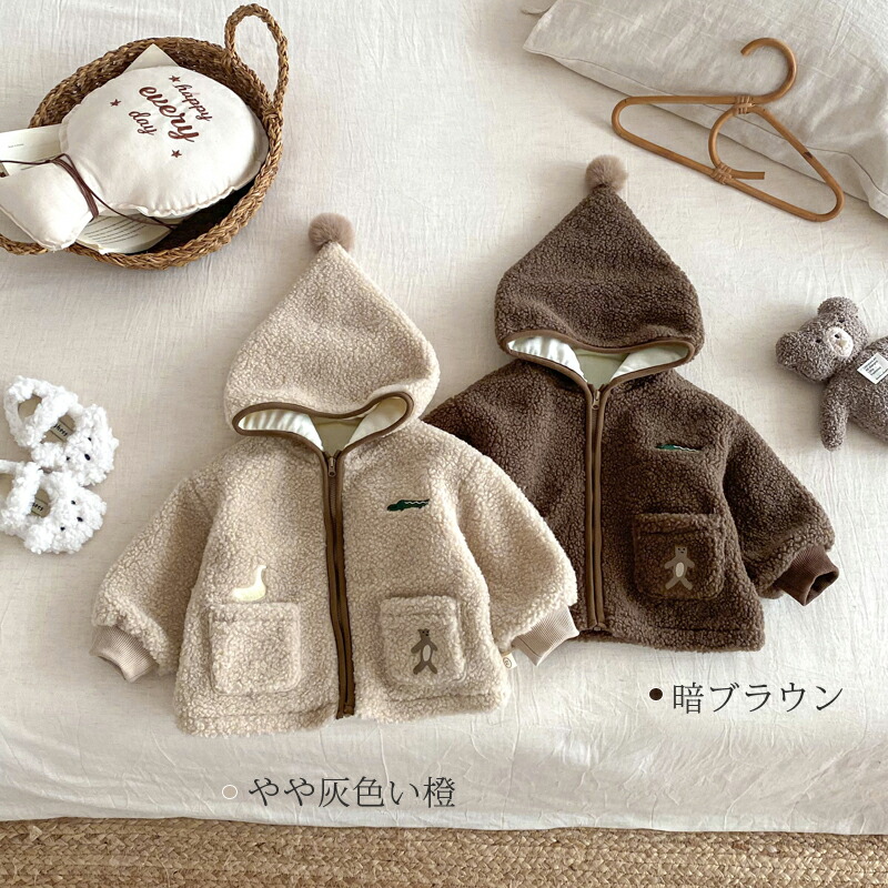 ボアコート キッズ コート とんがり帽 ベビー ベビー服 ファッション コート ジャケット 新登場! やや灰色い橙 暗ブラウン 73cm 80cm 90cm 100cm 110cm