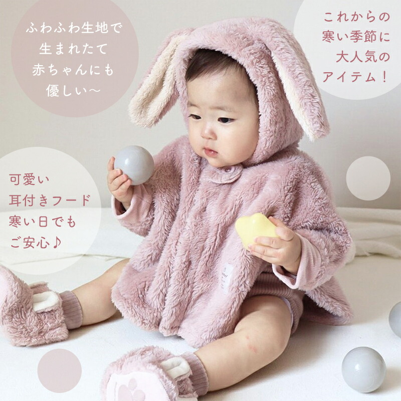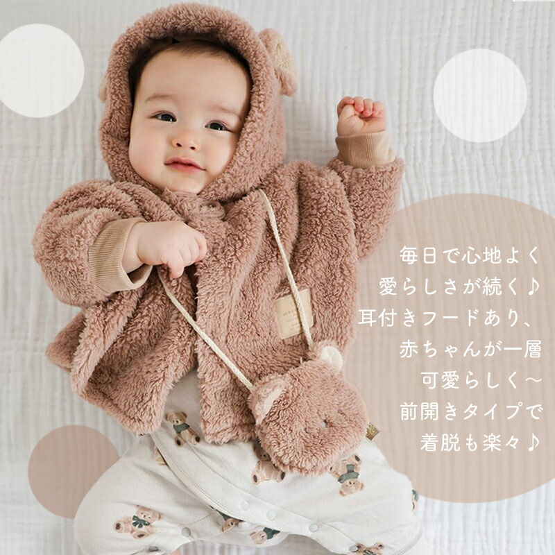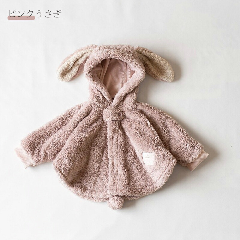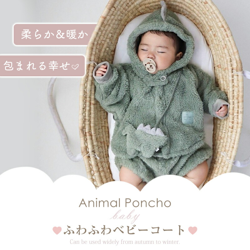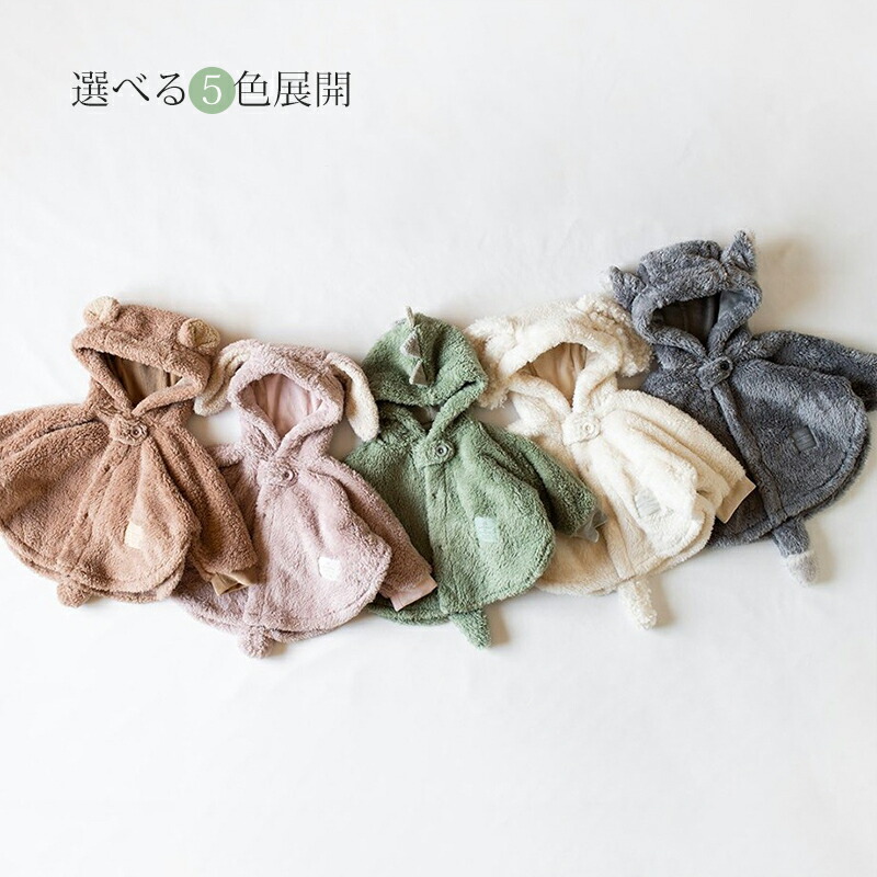 ベビー フード付き 防寒 ボア コート キッズ ベビー マタニティ 特集 ホワイト兎 ピンク兎 グリーン恐竜 ブラウン熊 グレー猫 66cm 73cm 80cm 90cm 100cm