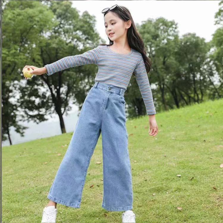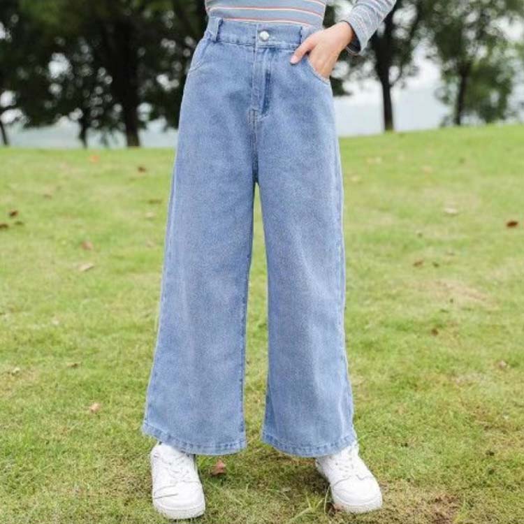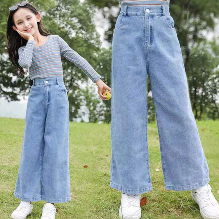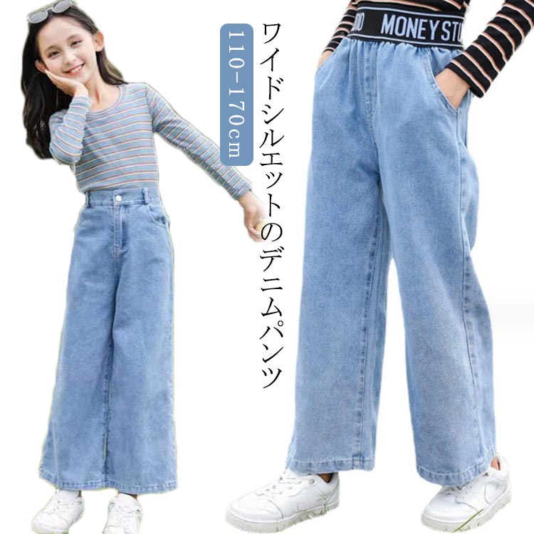 キッズ デニムパンツ ワイドパンツ 女 キッズ ボトムス パンツ 続々入荷中 ボタン ウェストゴム 110cm 120cm 130cm 140cm 150cm 160cm 170cm