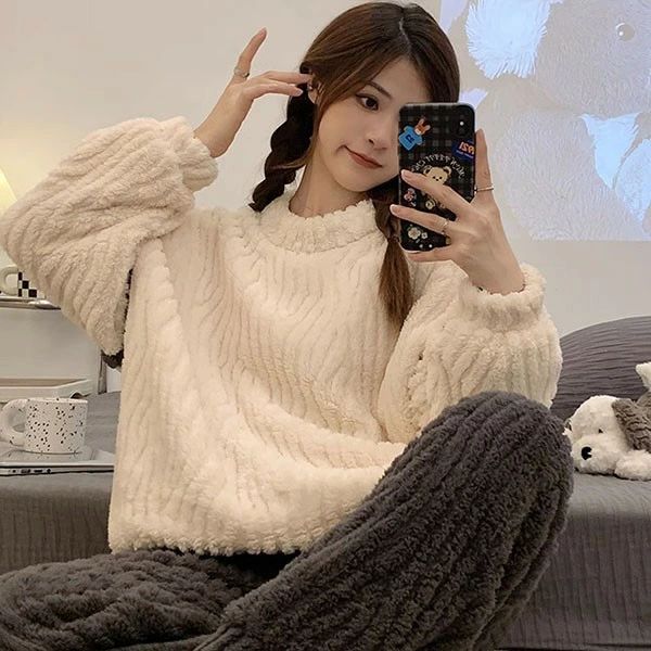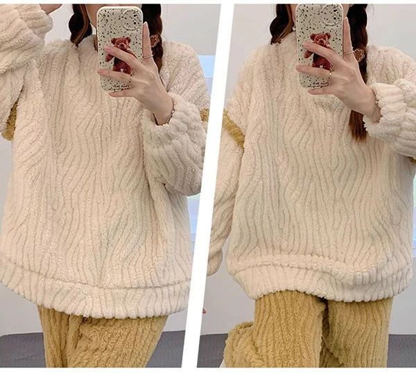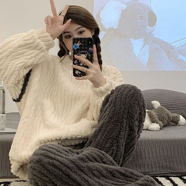 もこもこ ルームウェア 上下セット パ インナー 下着 ナイトウエア 通販 ホワイト×ブルー ホワイト×ブラック M L 2L(XL) 3L(2XL)