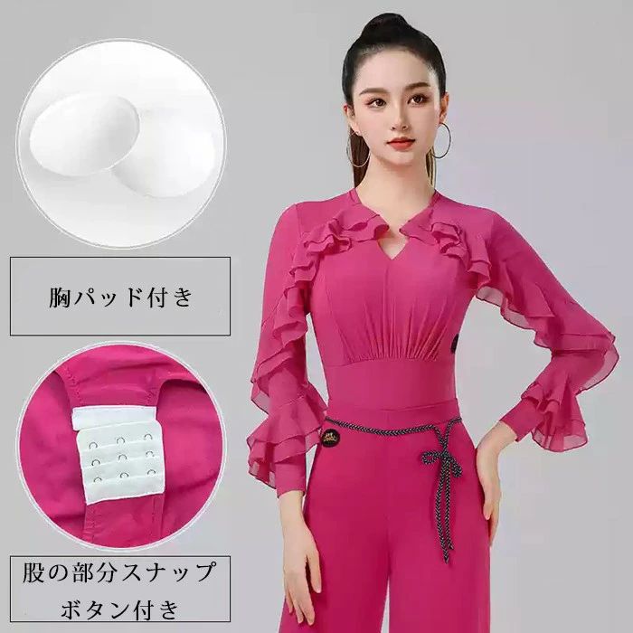 社交ダンス トップス レオタード 股下 体操 ダンス 社交ダンス ウェア 通販 ブラック ローズ パープル S M L XL 2XL 3XL