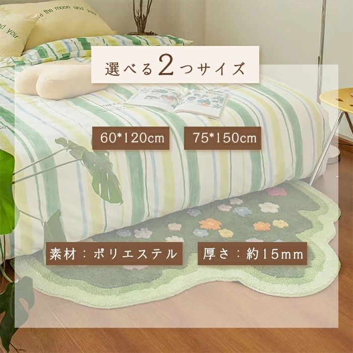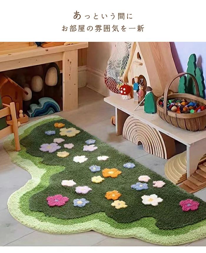 ラグ 洗える ラグマット 芝生風 花柄 60x120cm 75x150cm