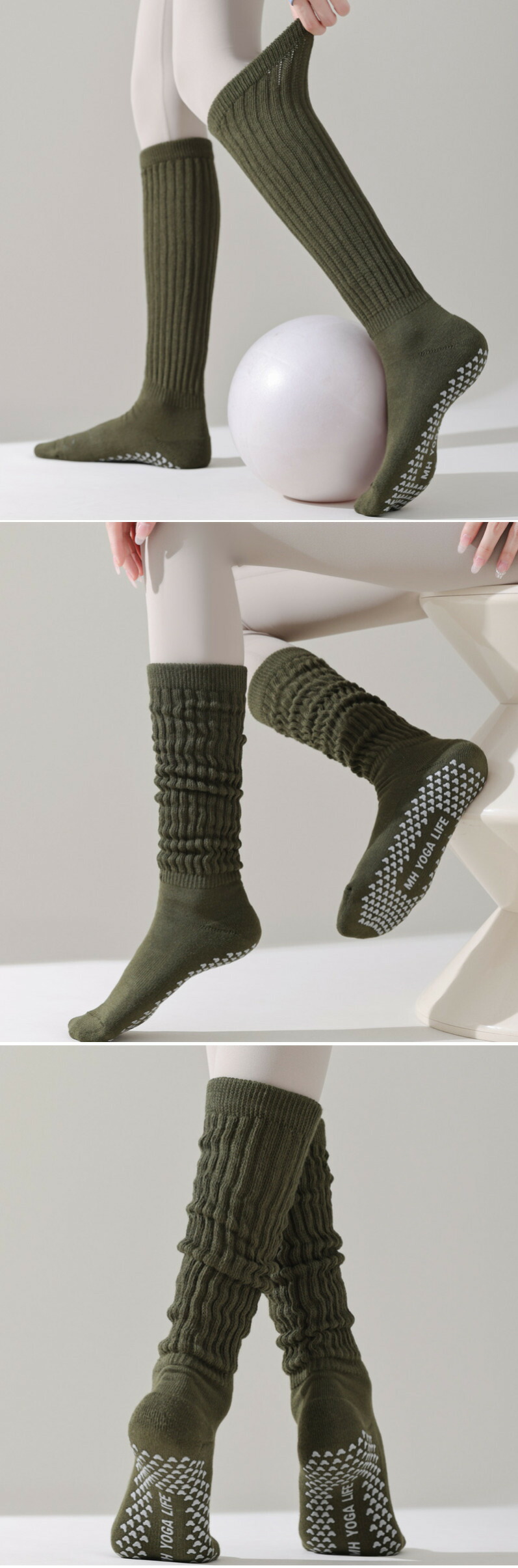 カーフソックス ソックス 靴下 滑り止め ヨガソックス レディース ゆったり無地ハイソックス パンプスソックス 厚手 あったか 厚手パイル 綿混 秋冬 冷え対策 アウトドアにも ロングソックス 防寒