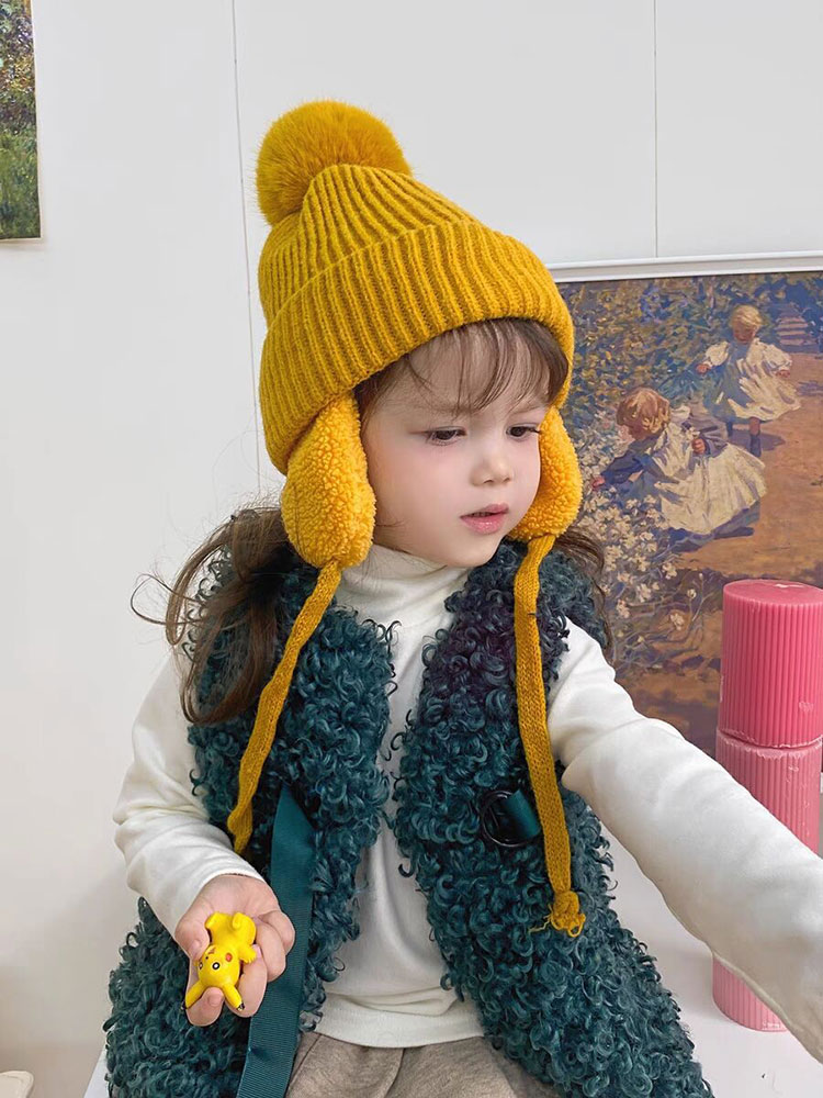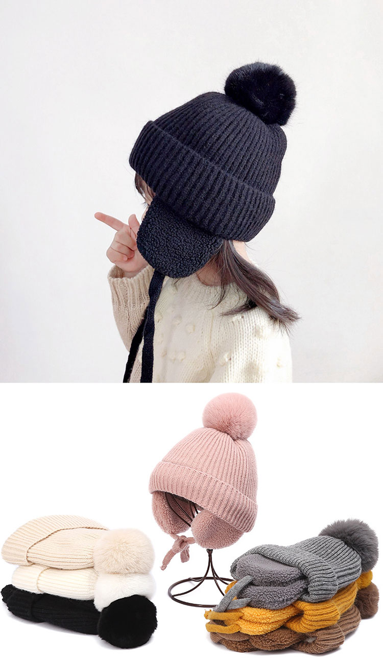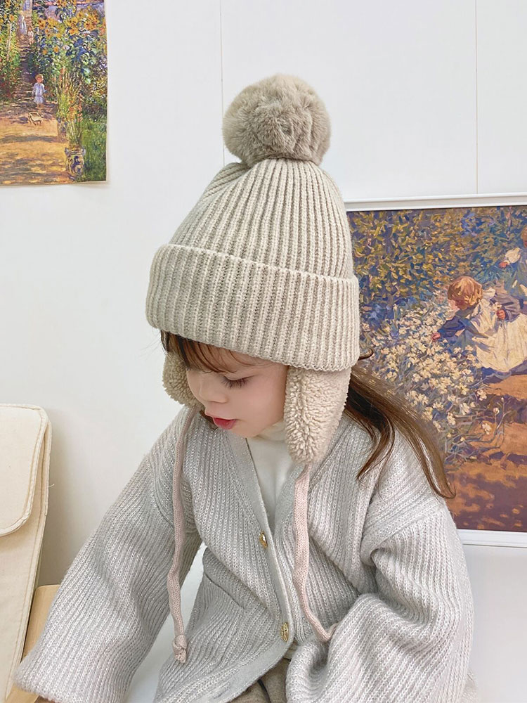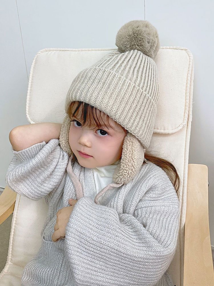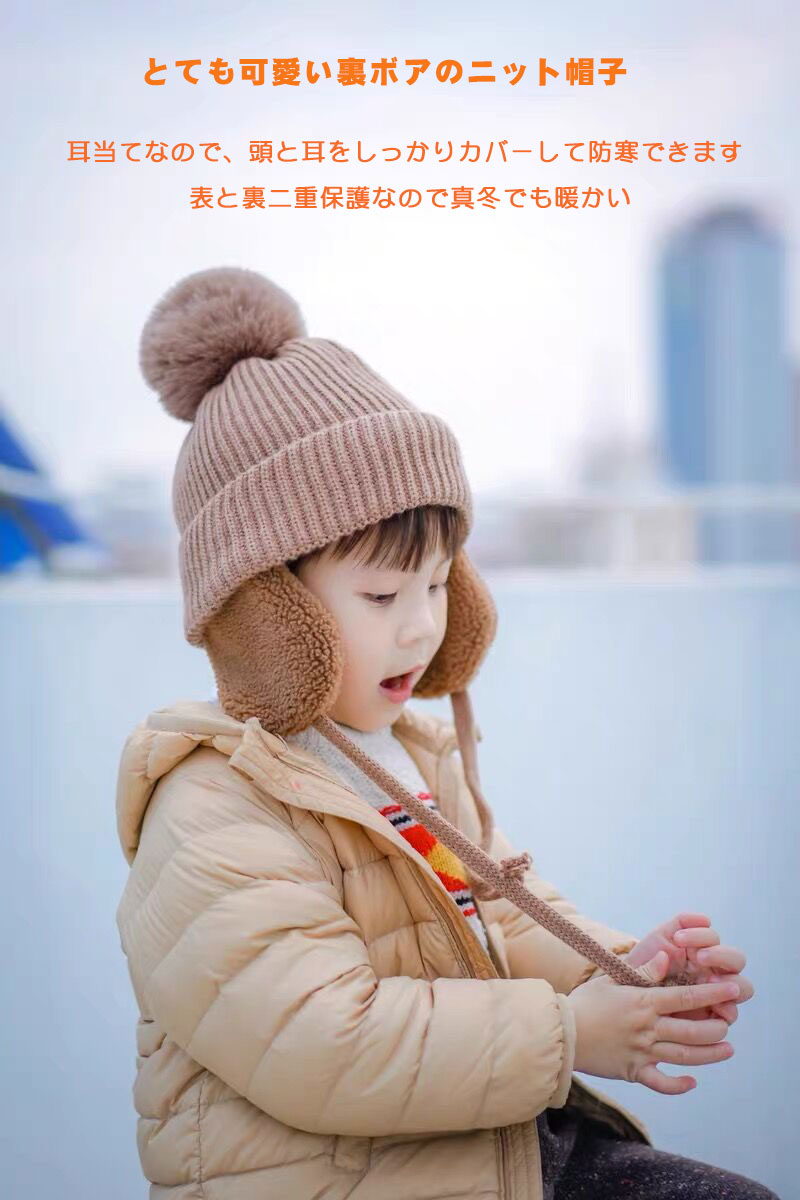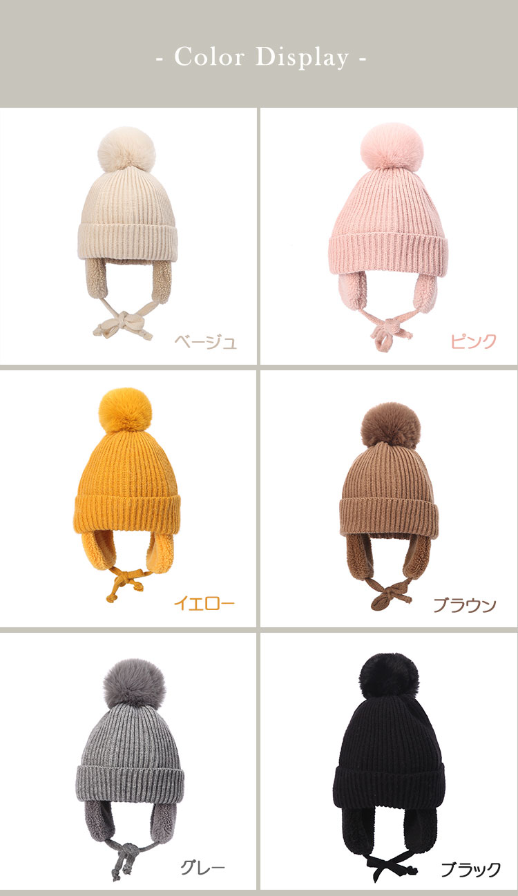 子供用 ニット帽子 耳あて 男の子 女 キッズ 帽子 ニット帽 続々登場 ベージュ ピンク イエロー ブラウン グレー ブラック ホワイト