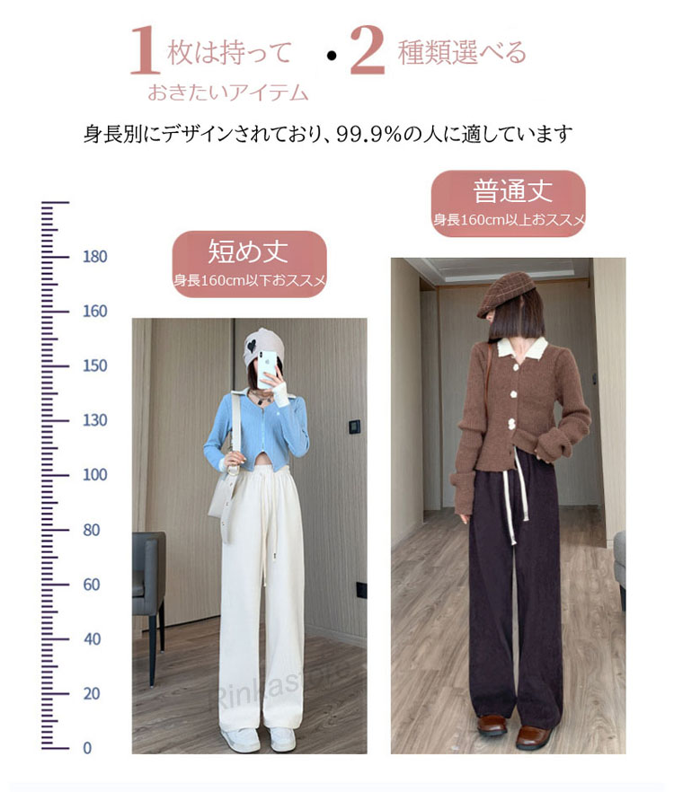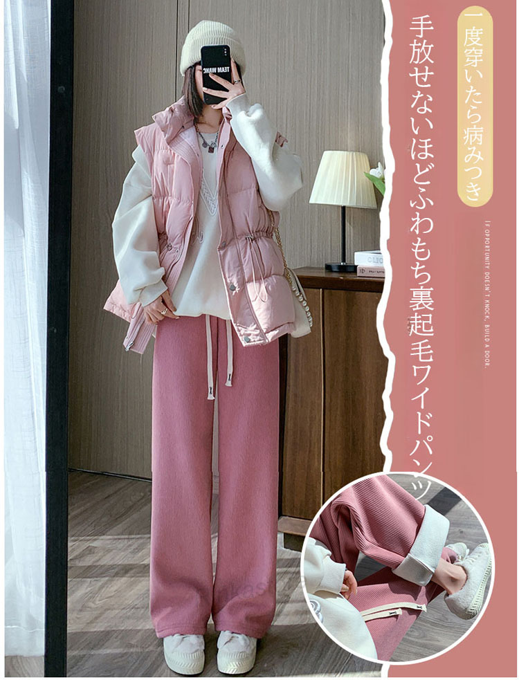 ワイドパンツ レディース 秋 冬 6C レディースファッション 新登場! 裏起毛無し 裏起毛タイプ 短め丈 普通丈
