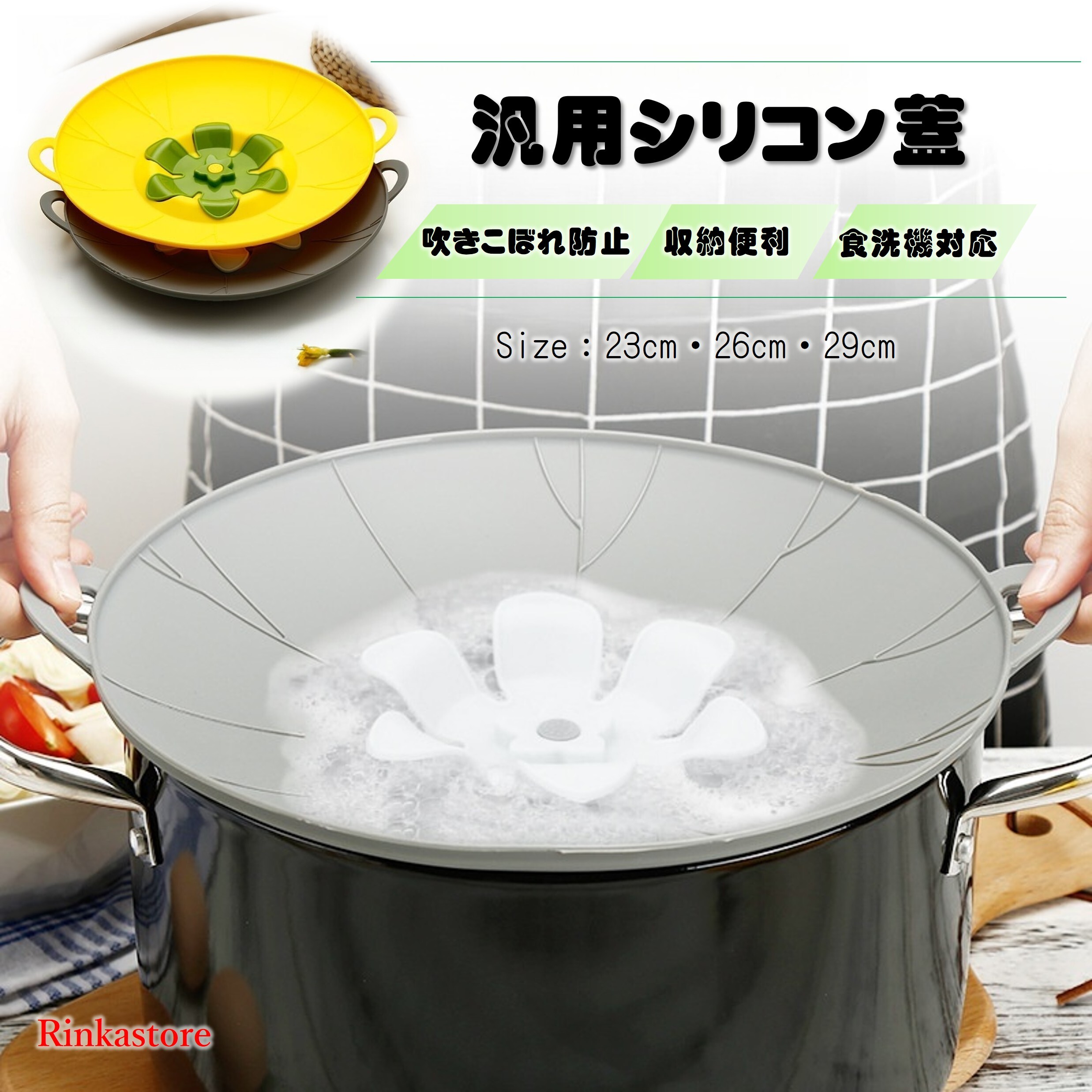 鍋蓋 吹きこぼれ 防止 シリコーン シ 23cm 26cm 29cm イエロー グレー