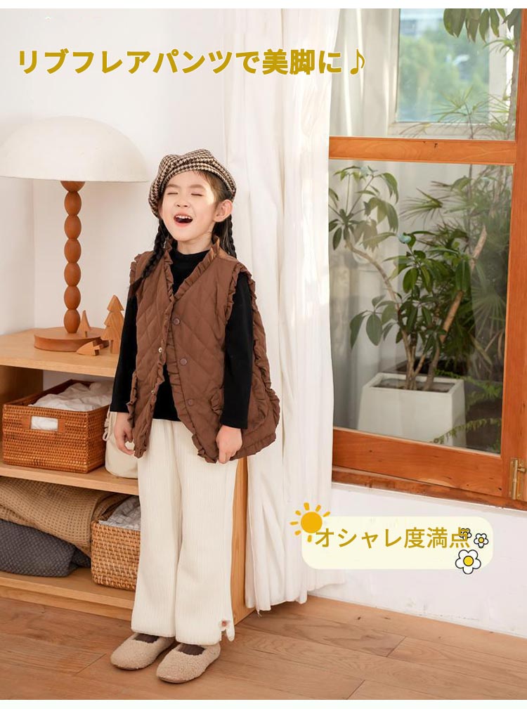 パンツ 子供服 リブフレアパンツ 女の キッズ ボトムス パンツ 新作 グレー ベージュ ブラック 110cm 120cm 130cm 140cm 150cm