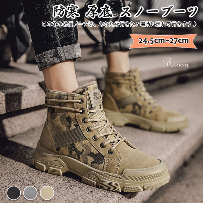 スノーブーツ メンズ 裏起毛 防寒 防 メンズ靴 スノーシューズ 早い者勝ち ブラック グレー カーキ 39(内寸24.5cm) 40(内寸25cm) 41(内寸25.5cm) 42(内寸26cm) 43(内寸26.5cm) 44(内寸27cm)