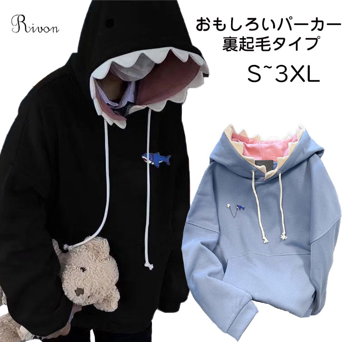 サメパーカー 裏起毛 パーカー レデイ レディースファッション 続々入荷中 ブラック ブルー S M L XL 2XL 3XL