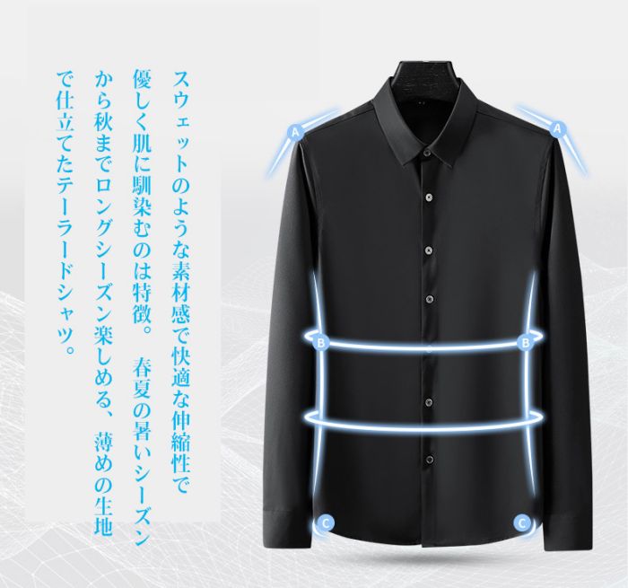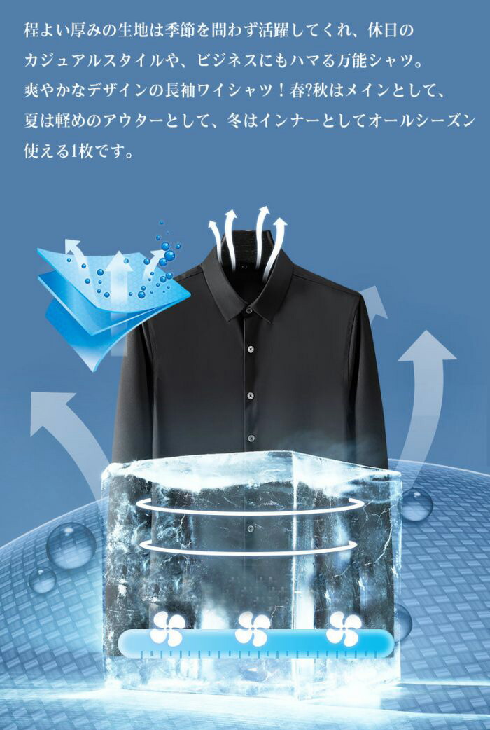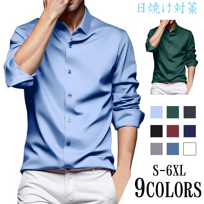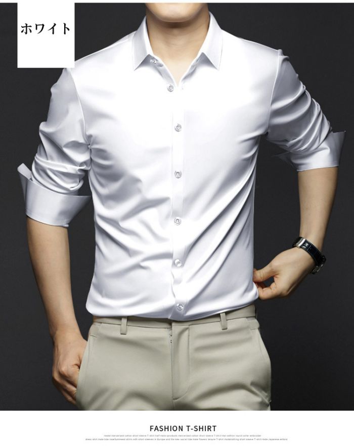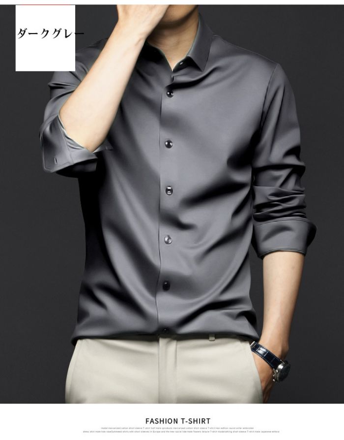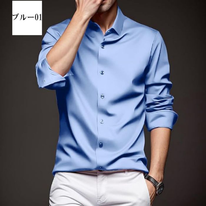 メンズ耐シワ性極薄アイスシルクワイシャ トップス ワイシャツ 超目玉商品 ブルー01 ブルー02 ブラック ネイビー ダークグレー ライトグレー ホワイト レッド グリーン 38/S 39/M 40/L 41/XL 42/2XL 43/3XL 44/4XL 45/5XL 46/6XL
