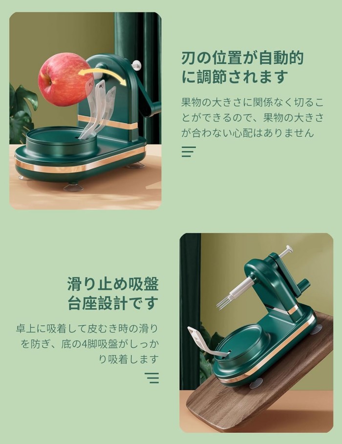 アップルピーラー 果物削りフルーツピー キッチン用品 食器 調理器具 超目玉商品 ダークグリーン ライトグリーン
