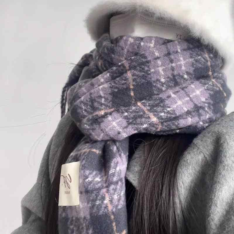 マフラー レディース 秋冬 高級感 仿羊 ストール 韓国風 紫 厚手 防寒 あったか ショール 香芋紫 復古緑 クリスマス レッド 金典黒 千鳥格子 ブラック イエロー グリーン ピンク カーキ