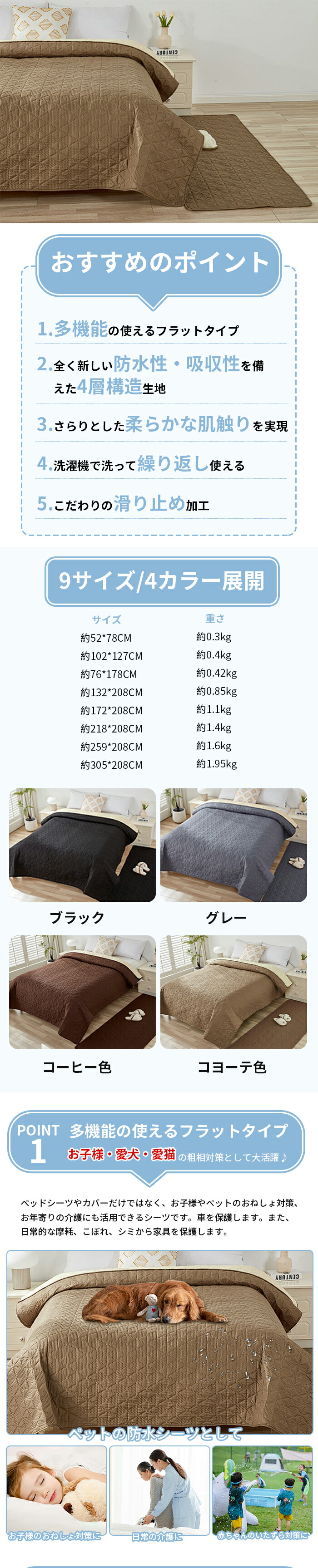 ペット 防水マット 犬 防水シーツ 猫 ペット ペットグッズ 通販 ブラック グレー コーヒー色 コヨーテ色 52*78cm 76*178cm 102*127cm 132*208cm 172*208cm 208*208cm 218*208cm 259*208cm 305*208cm