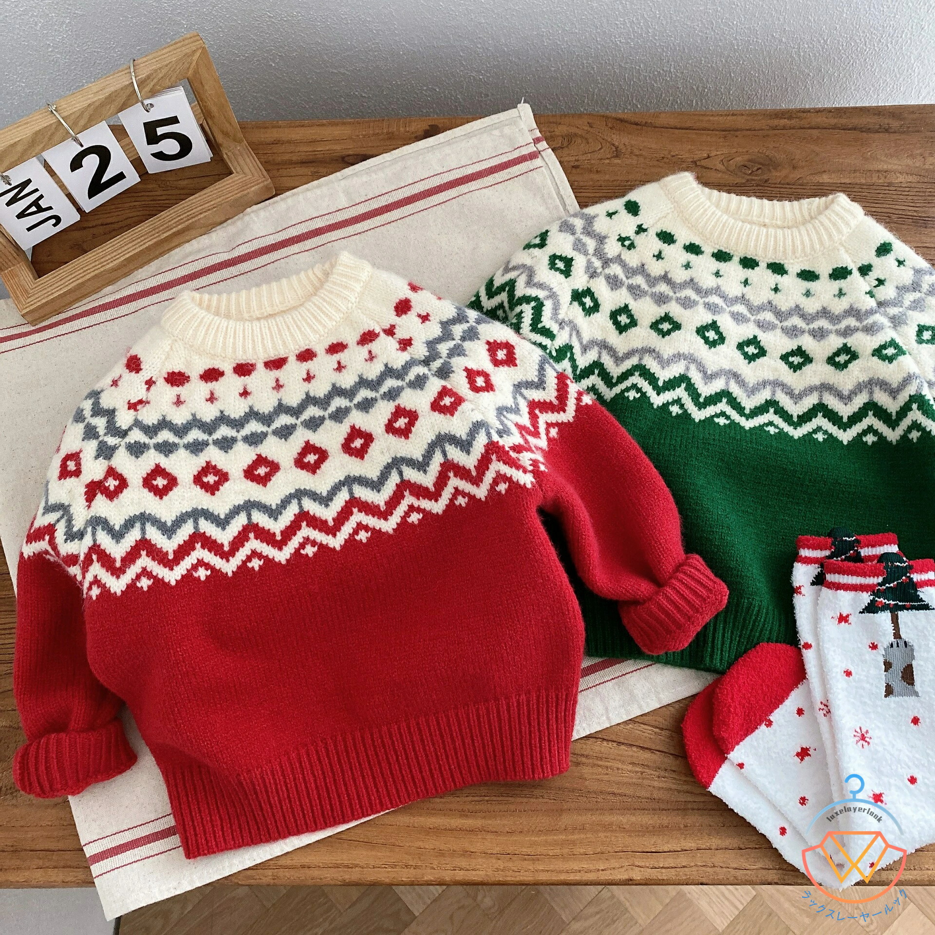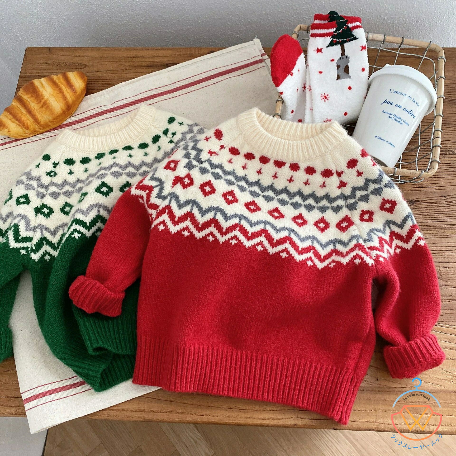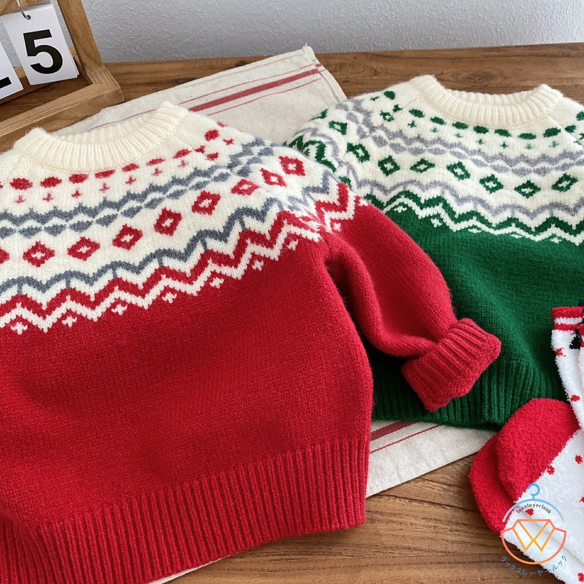 子供 クリスマス セーター 子供服 秋 キッズ トップス セーター 早い者勝ち レッド グリーン 73cm 80cm 90cm 100cm 110cm 120cm 130cm