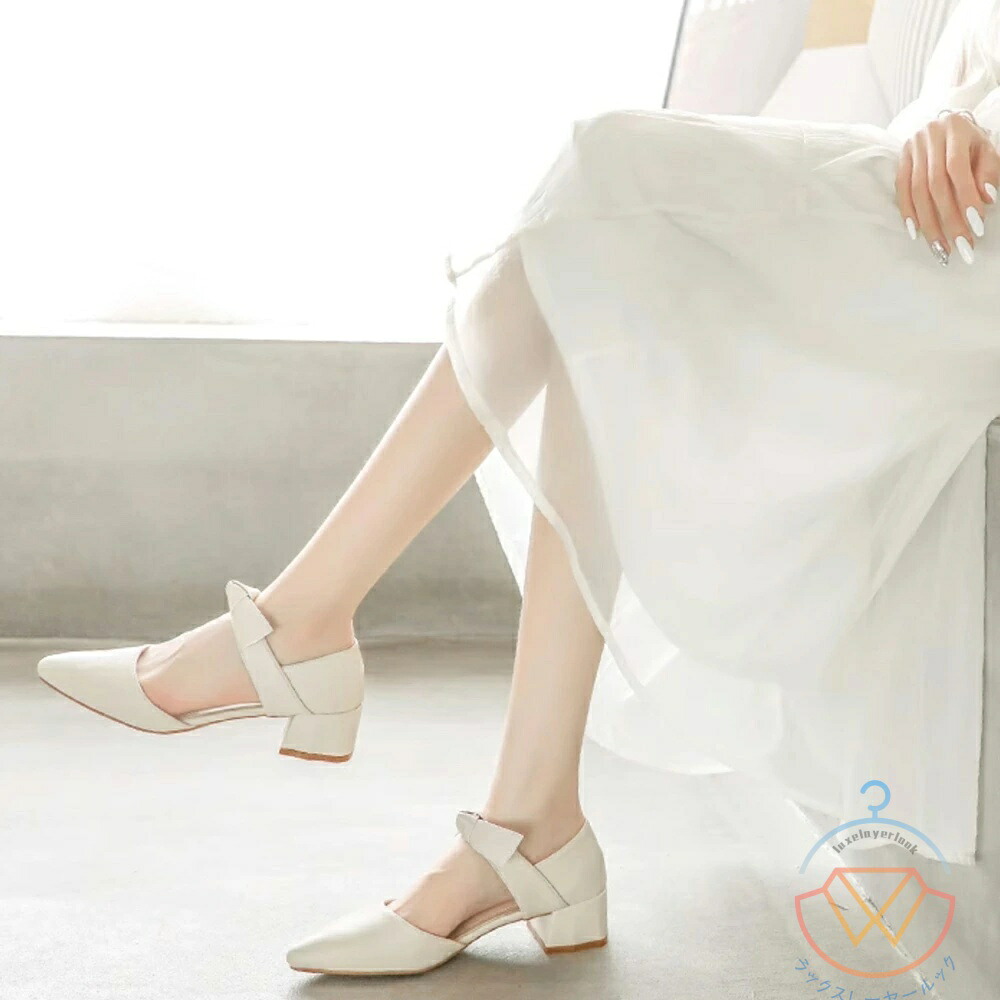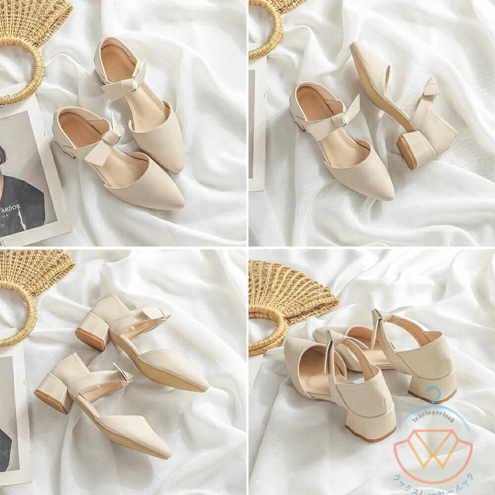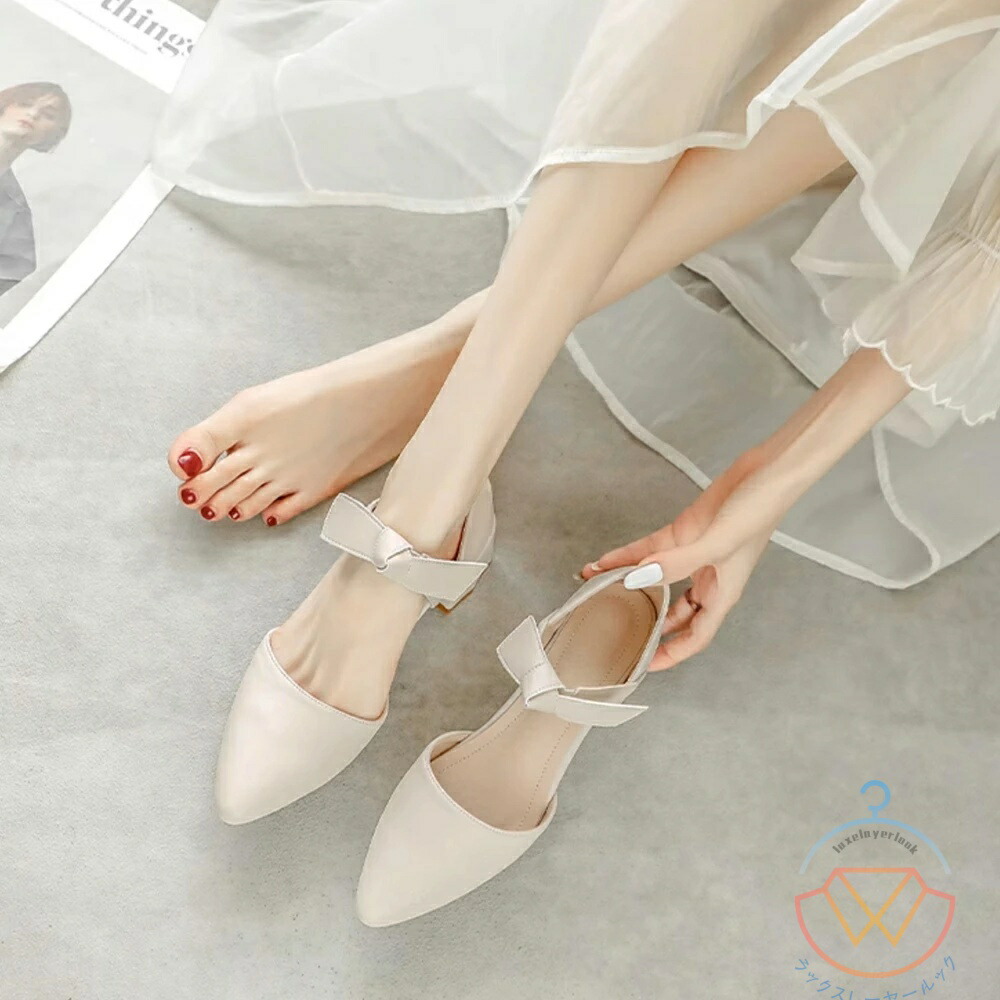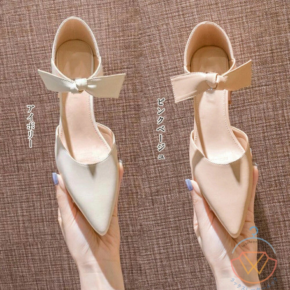 パンプス 痛くない リボンパンプスヒー レディース靴 パンプス 早い者勝ち アイボリー ピンクベージュ 22.5cm(35) 23.0cm(36) 23.5cm(37) 24.0cm(38) 24.5cm(39)