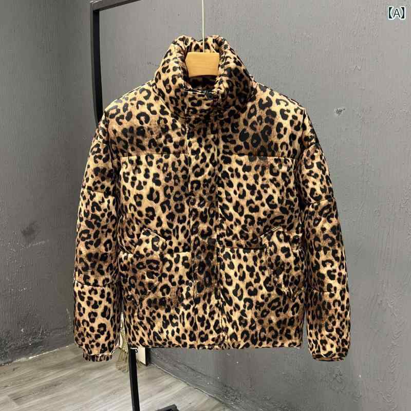 ジャケット アウター ヒョウ柄 ユニセックス Y2K 上着 レオパード メンズ コットン 風 秋冬 厚地 もこもこ 暖かい 防風 防寒着 パンコート ショート 映え 派手 ギャル GAL ストリ 総柄