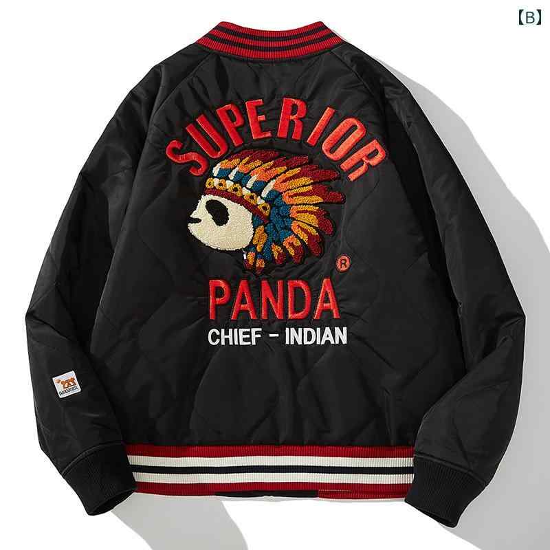スタジャン ブルゾン キルティングコットン 秋冬 パンダ グループ メンズ 綿 上着 ストリート ヒップホップ ポップ 刺繍 インド インディアン 異国 民族 女性 厚手 防寒着 ユニー ユニセックス
