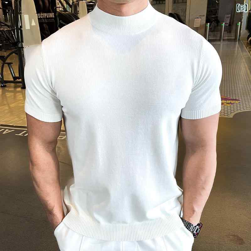Tシャツ タイト マッスル 春夏 メンズ ラウンドネック スリムフィット 万能 冷感 半袖 シンプル おしゃれ トップス カジュアル