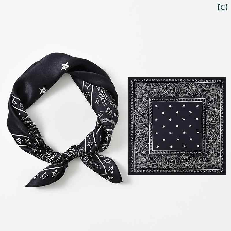シルクスカーフ 大判 プリント柄 ネックチーフ ヘッドバンド 正方形 柔らかい 薄手 カラバリ アレンジ ヒップホップ ストリート カジュアル ダンス
