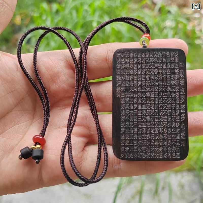 般若心経 ペンダント ネックレス レトロ スタイル 黒檀 木製 碑文 経典 木彫り 禅 平和 カード ユニセックス メンズ レディース ファッション カジュアル お守り スピリチュアル アクセサリー