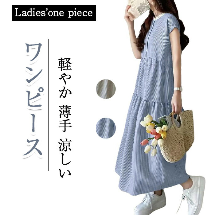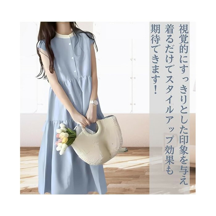 ワンピース レディース 夏 ノースリー ワンピース 新登場! ブルー グリーン