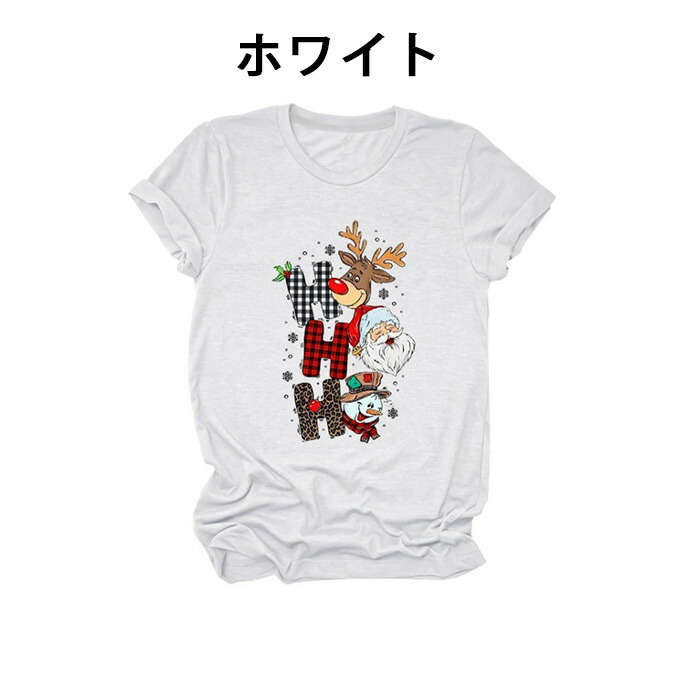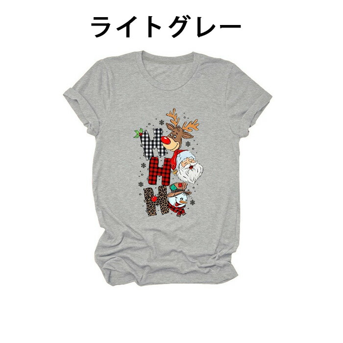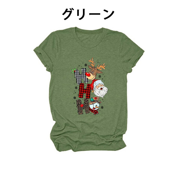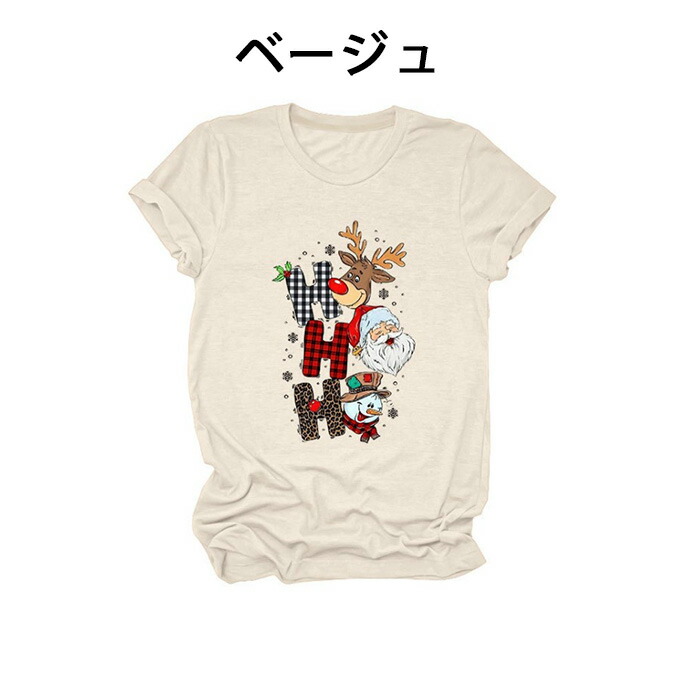 クリスマス 半袖 レディース カットソ トップス Tシャツ カットソー 特集 ブラック ダークグレー ライトグレー ホワイト ベージュ ピンク ネイビー パープル グリーン ワインレッド S M L XL 2XL 3XL