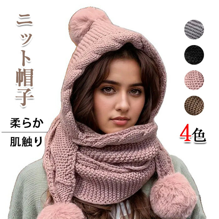 ニット帽子 レディース スカーフ付き マフラー スカーフ レディーススカーフ 新登場! ブラック グレー ピンク カーキ