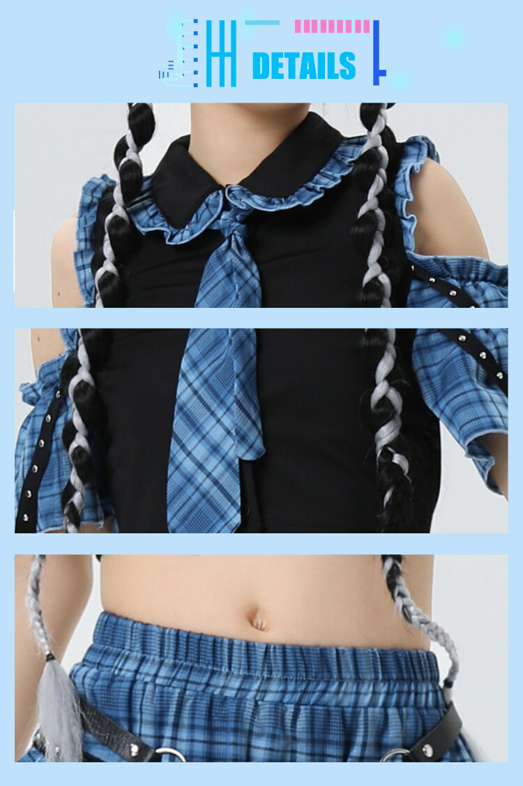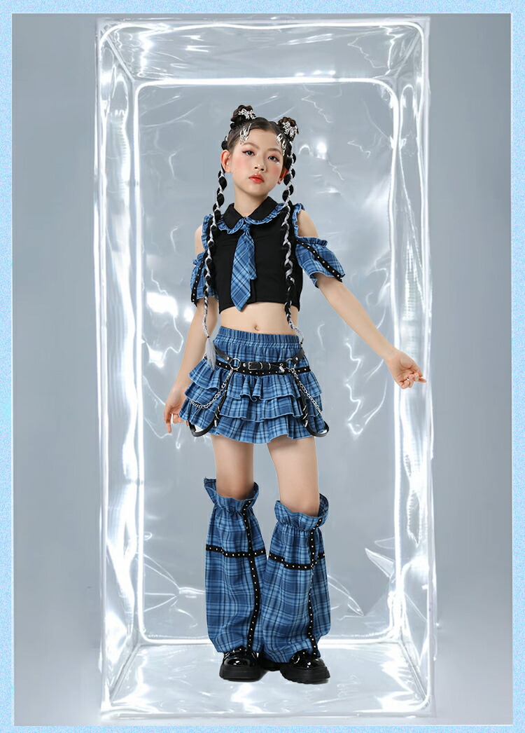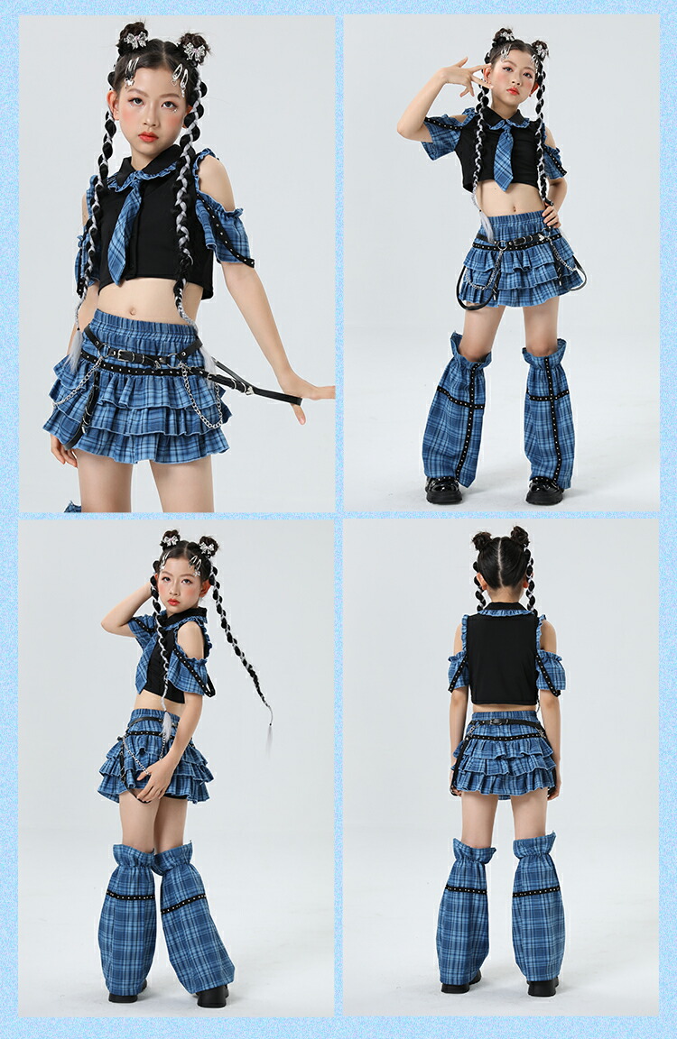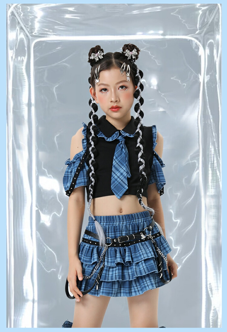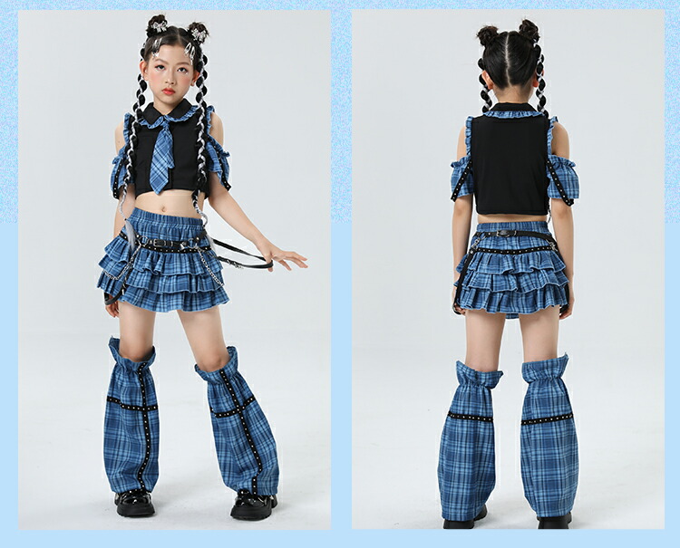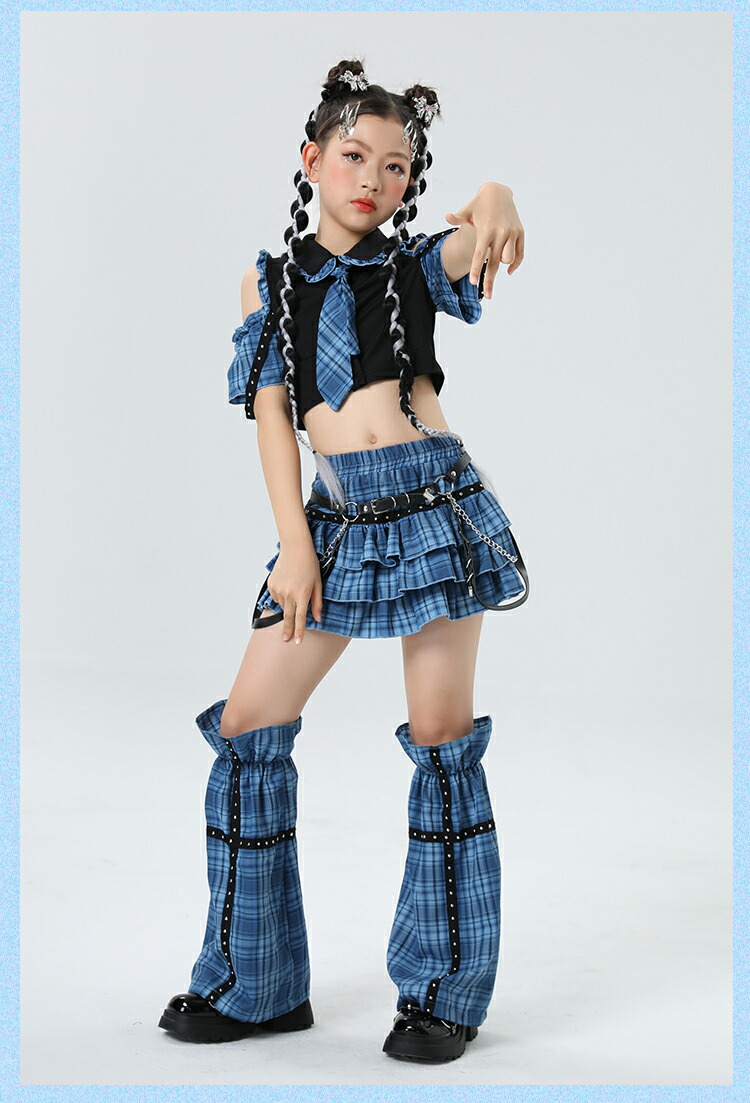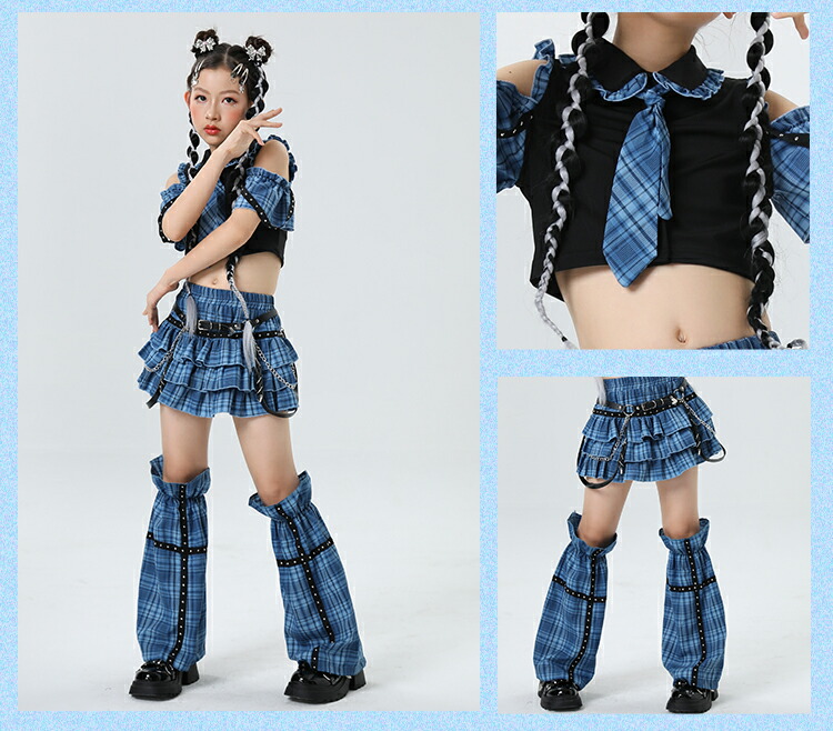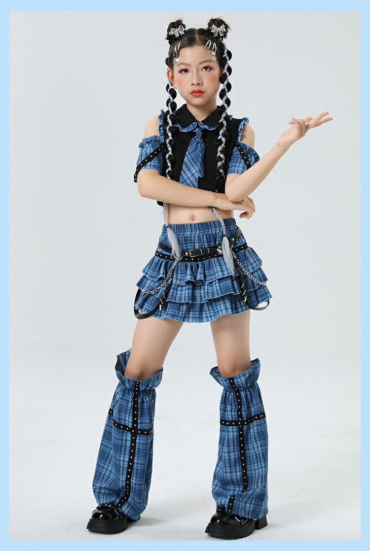 青 チェック柄 キッズダンス衣装 セッ 体操 ダンス 社交ダンス ウェア 通販 トップスのみ スカートのみ(ベルトなし) スカート+ベルト トップス+スカート トップス+スカート+ベルト トップス+スカート+足カバー トップ+スカート+ベルト+足カバー 120 130 140 150 160 170