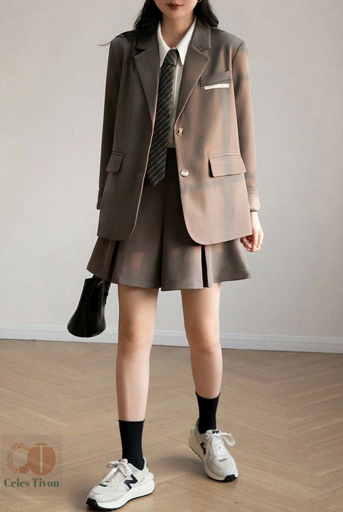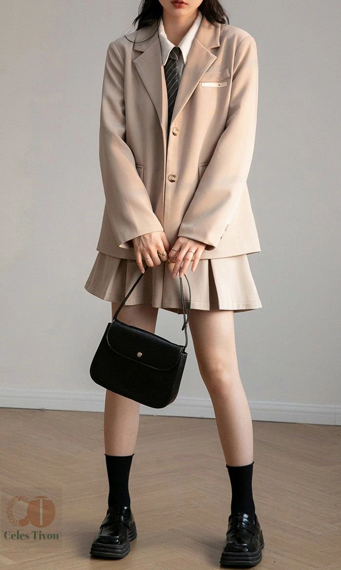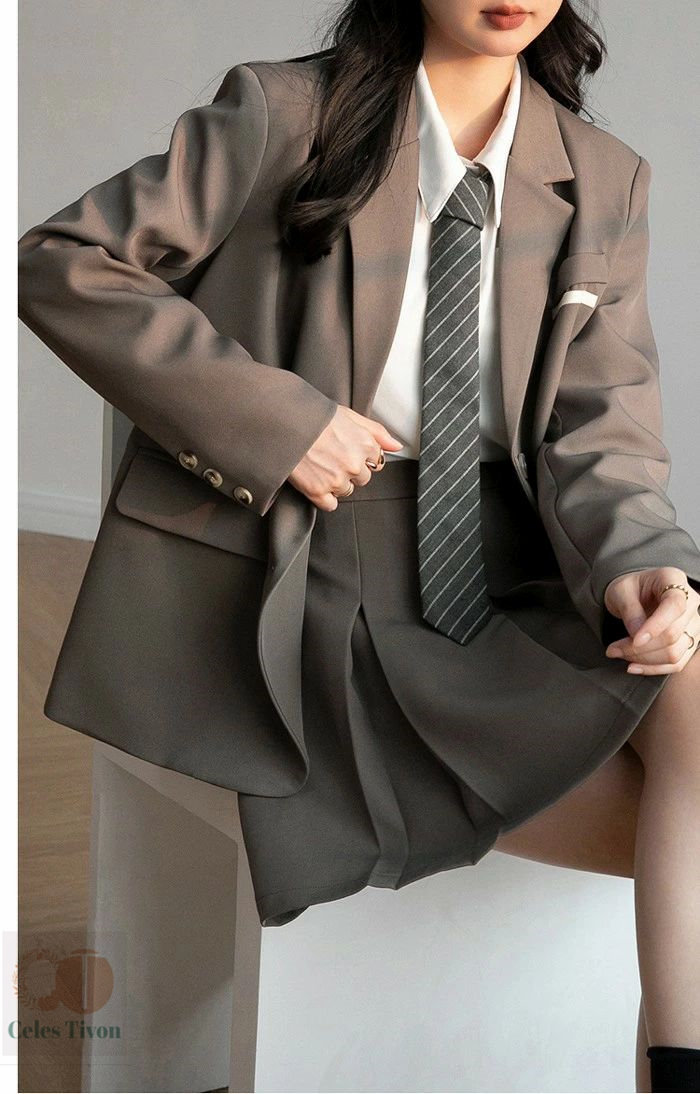 ジャケット プレザー 入学式 卒業式 スーツ セットアップ スカートスーツ 早い者勝ち ベージュ ブラウン ブラック XS S M L