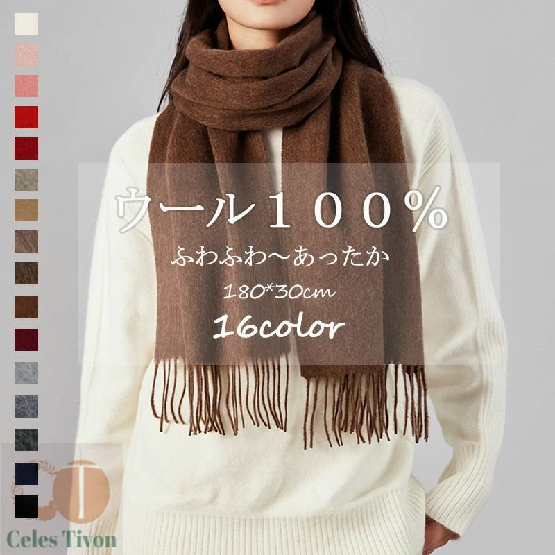 マフラー レディース 無地 ウール 秋 バッグ 小物 ブランド雑貨 通販 ホワイト 灰桜 ピンク レッド ダーグレッド バーガンディー ライトグレー グレー ダーググレー ベージュ ライトブラウン ブラウン コーヒー色 紺色 ブラック