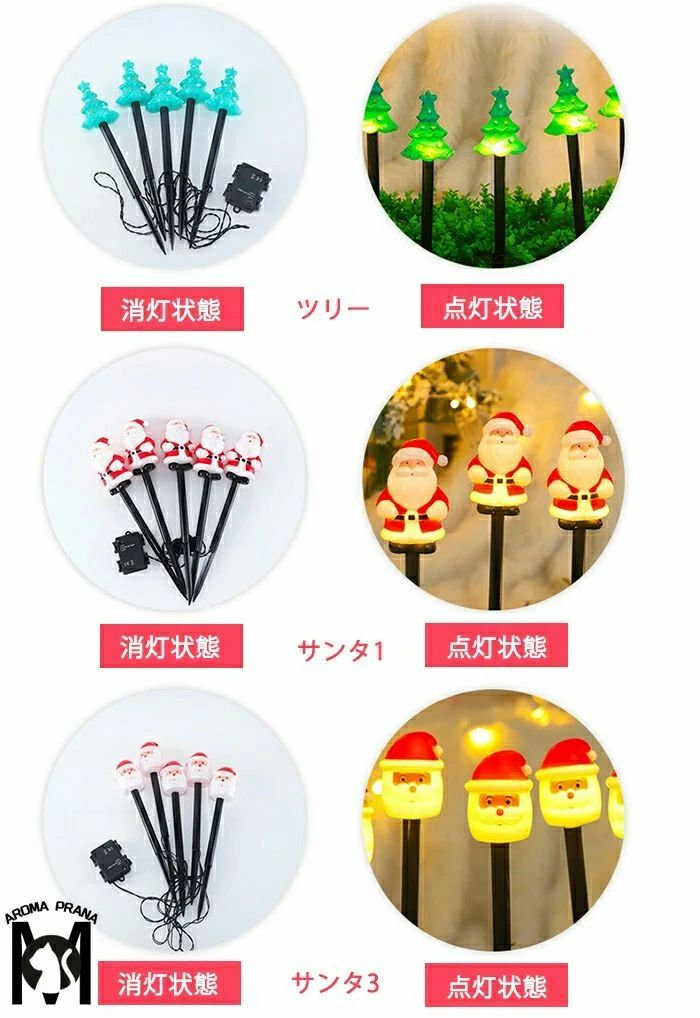 ソーラーライト 屋外 ガーデンライト サンタ1 雪だるま サンタ3 クリスマスツリー サンタ2 ステッキ 電池式 ソーラー充電式