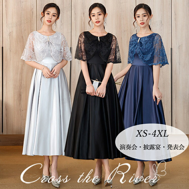 大人 ピアノ発表会 カクテルドレス 結 ドレス 続々登場 XS S M L XL 2XL 3XL 4XL ネイビー ブラック グレー